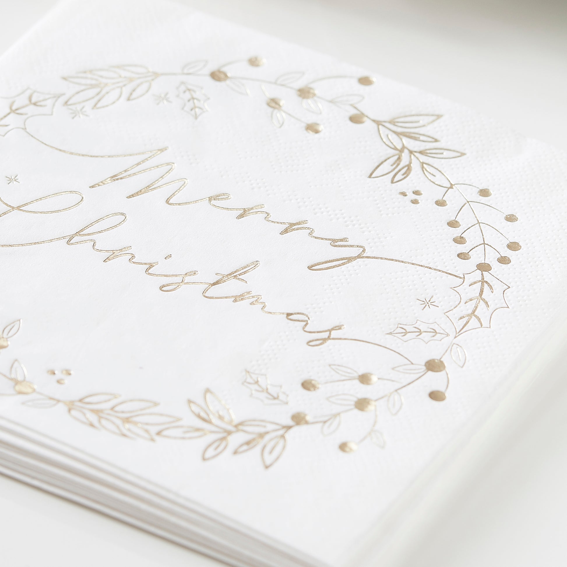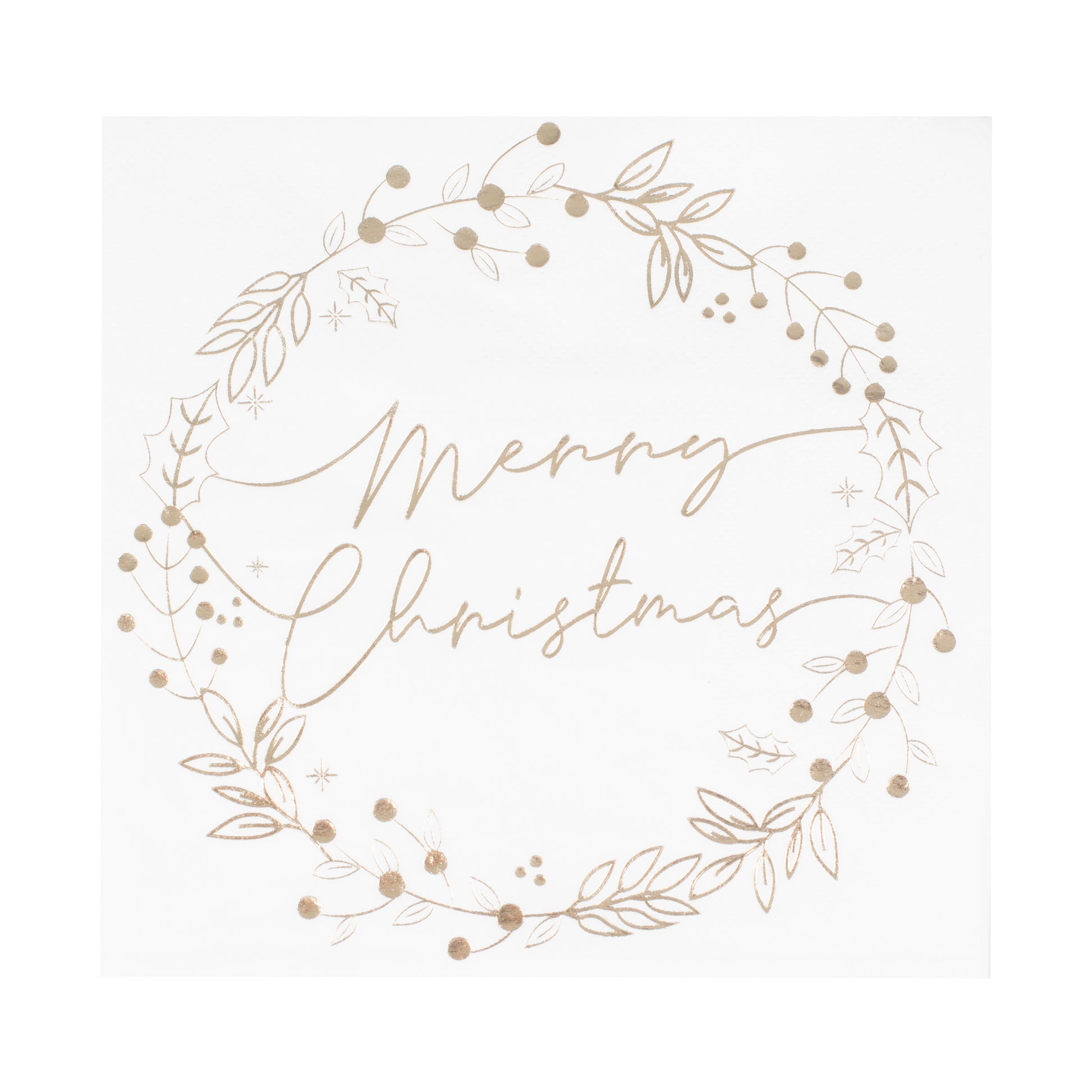 Gold Foiled Merry Christmas Wreath Christmas Napkins