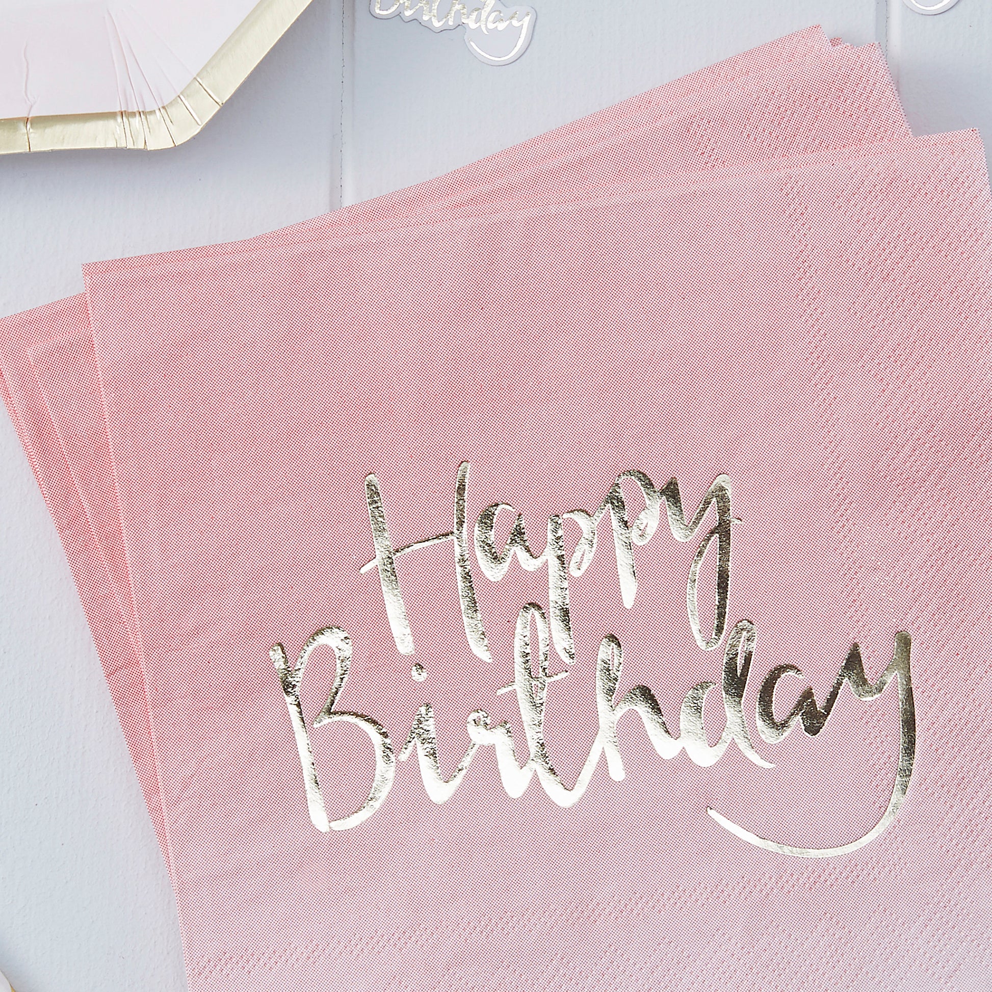 Gold Foiled Pink Ombre Happy Birthday Napkins
