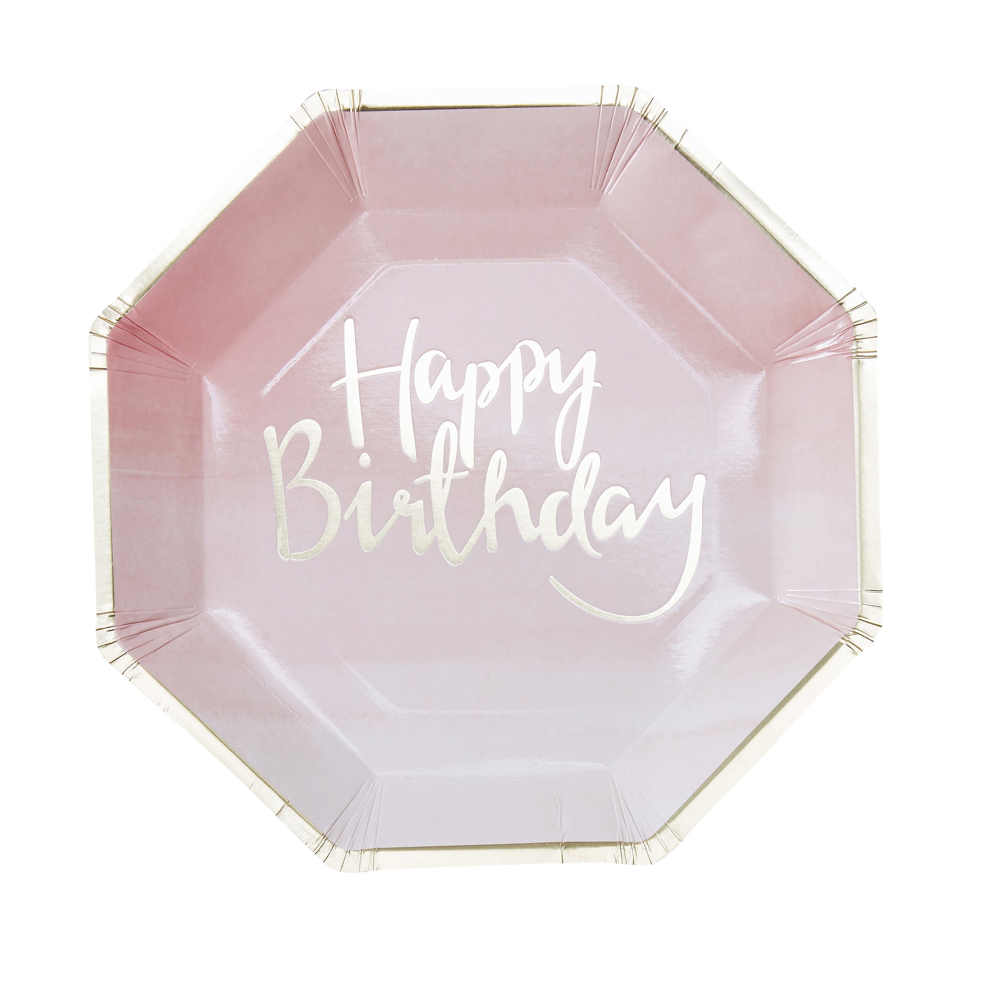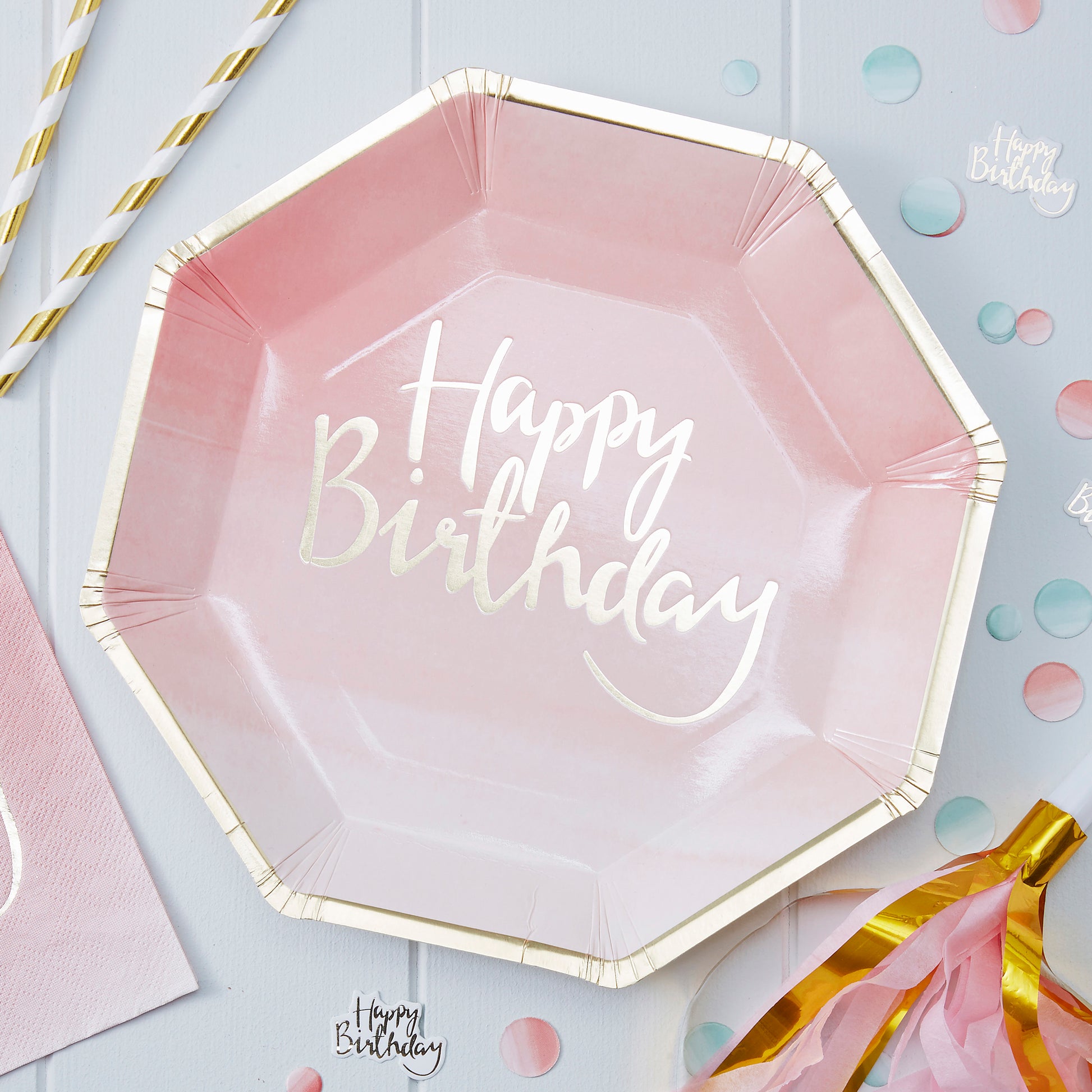 Gold Foiled Pink Ombre Happy Birthday Paper Plates - Pick and Mix