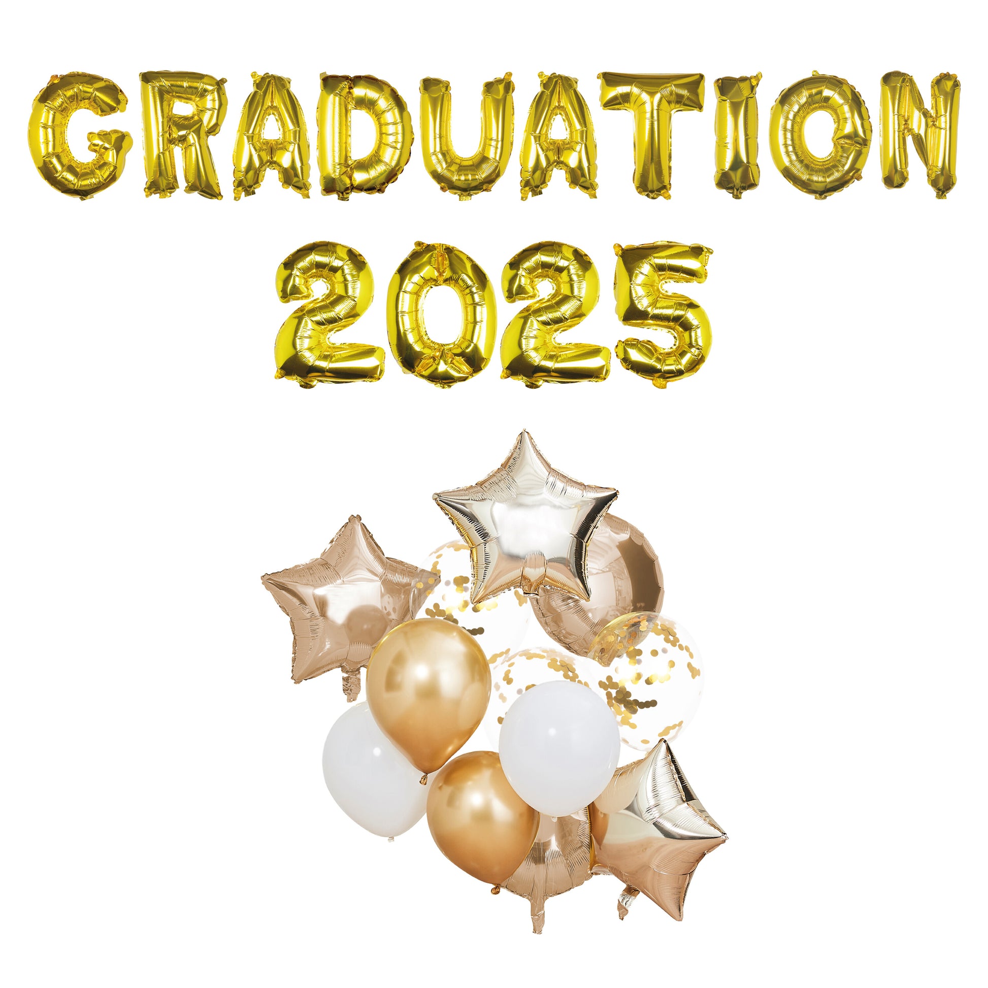 Celebrate the graduate with this graduation 2025 balloon kit. Perfect for party celebrations, this DIY balloon bunting kit contains the balloons you need to create an unforgettable backdrop as part of your graduation decorations.