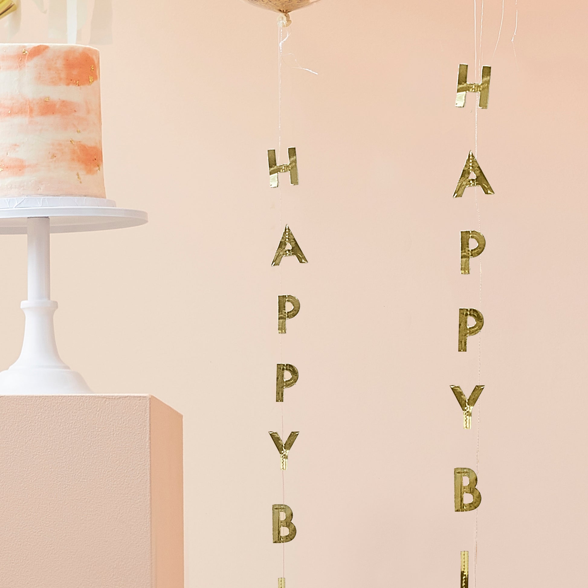 5 x Gold Happy Birthday Balloon Tails measuring 1m in height