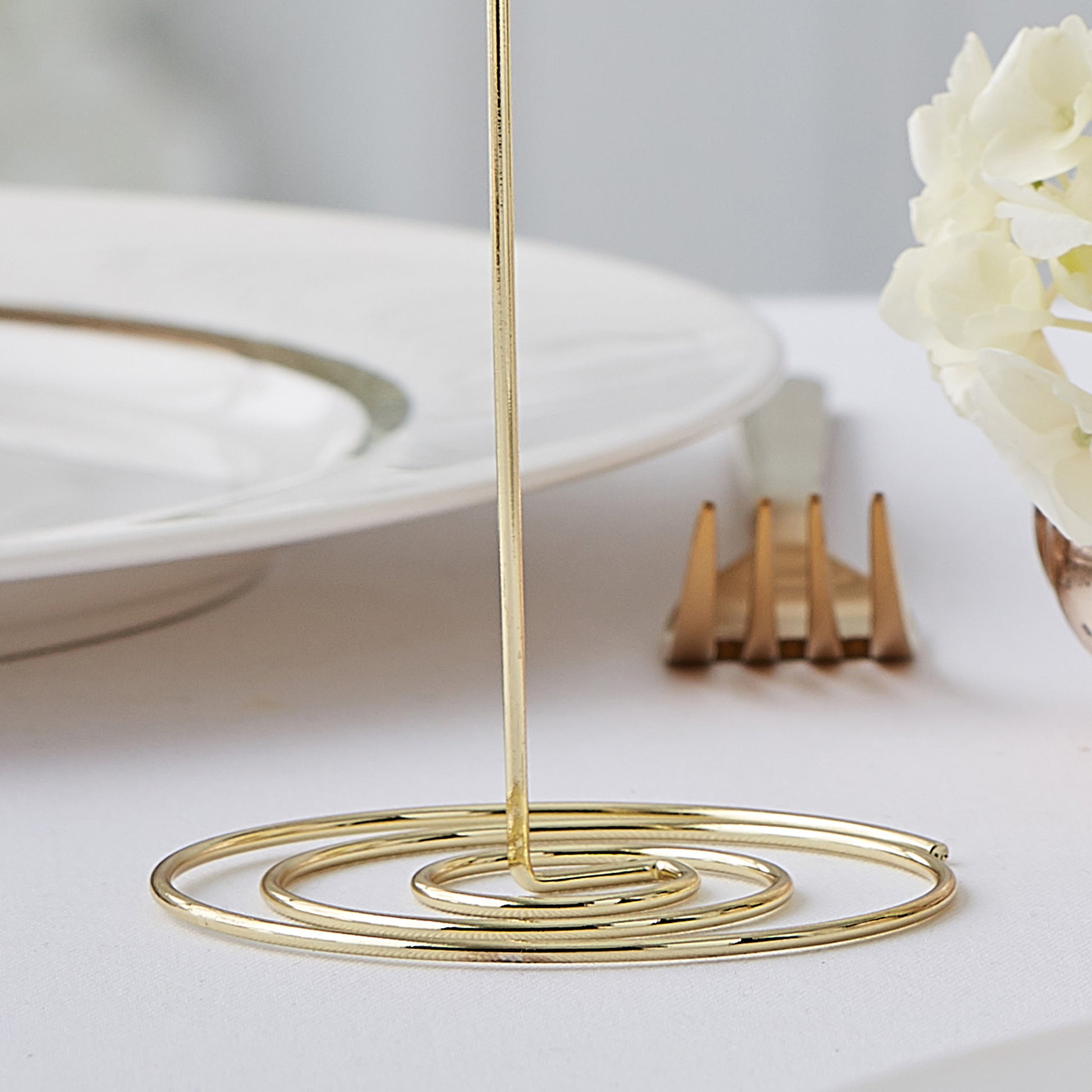 Make sure all your guests know where to sit on your big day with these gorgeous gold table number holders. Insert your table numbers and pop these on the tables - being freestanding you don't need to do anything more. Make sure all your guests know where to sit on your big day with these gorgeous gold table number holders. Insert your table numbers and pop these on the tables - being freestanding you don't need to do anything more.