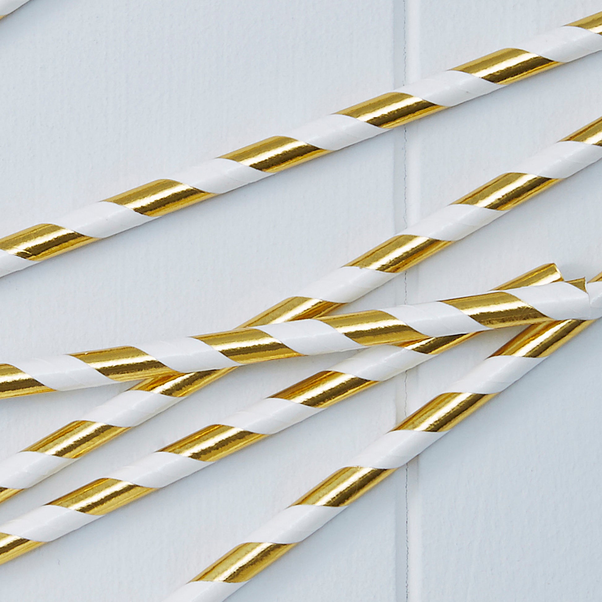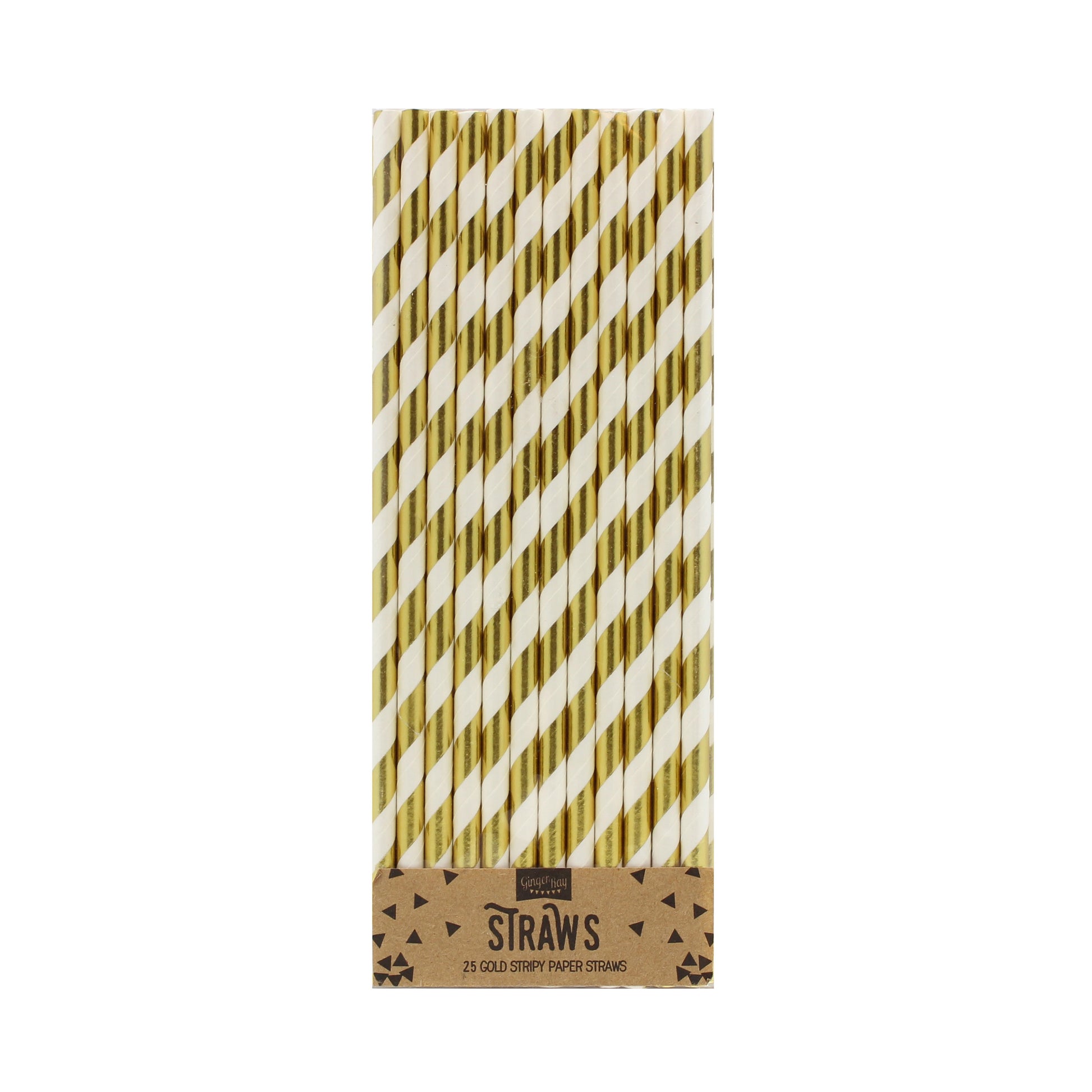 Each pack contains 25 x 19cm H party straws. All featuring a foiled gold striped design.