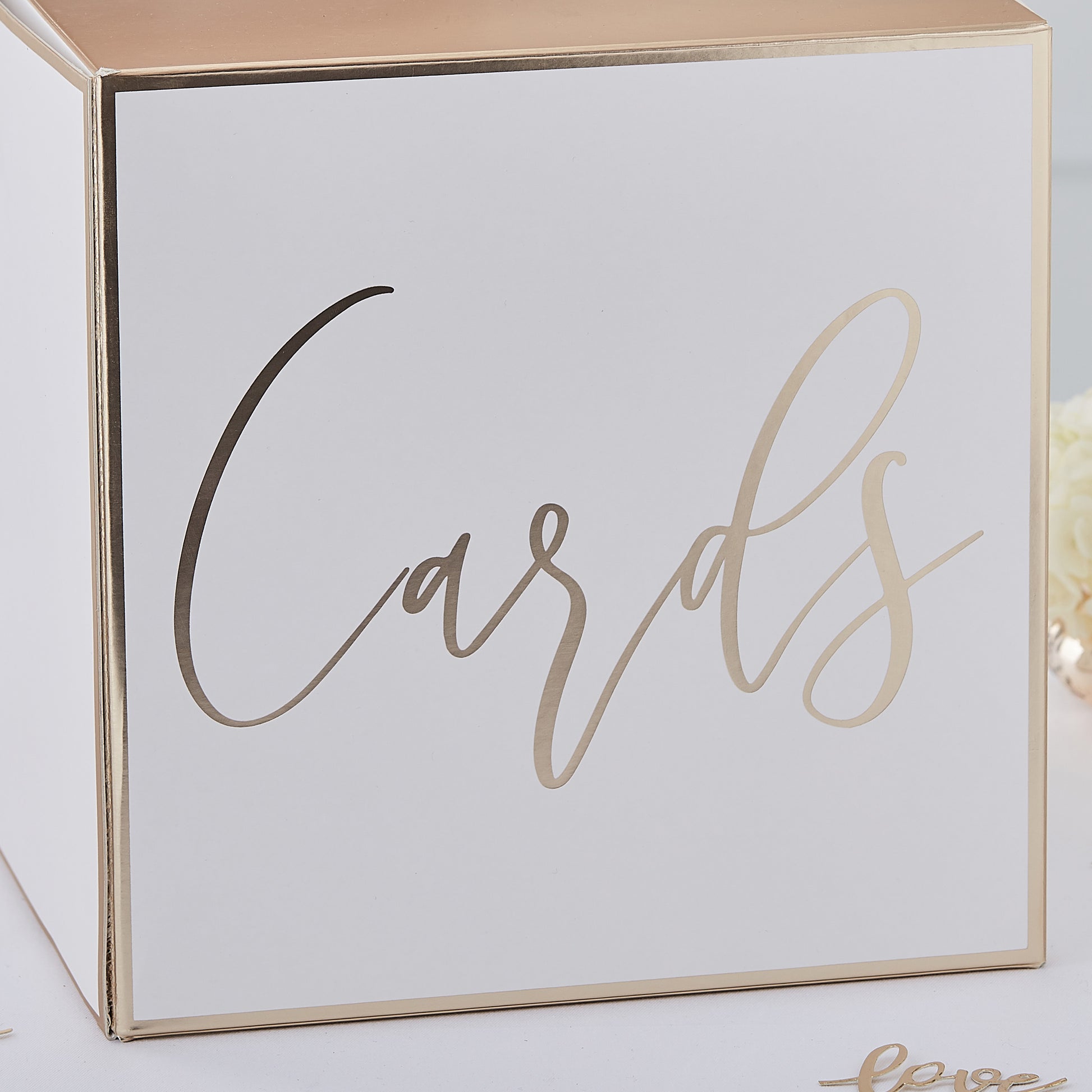 Our wedding card box holder comes flat packed and is very easy to put together - a great way to know where cards are at the end of the night to take home. Surround the card box on a wedding card table with other items from our Gold Wedding range.