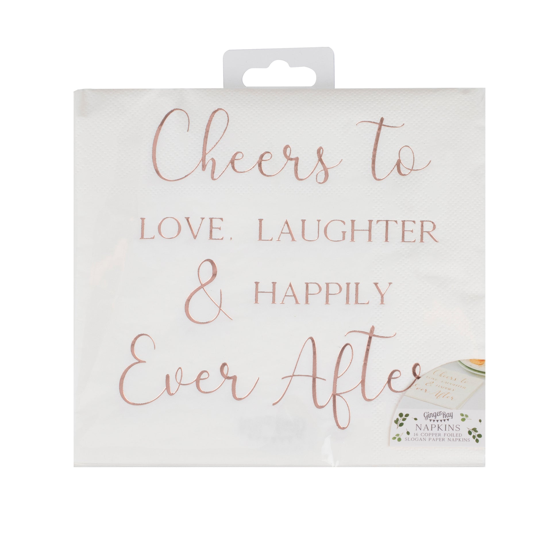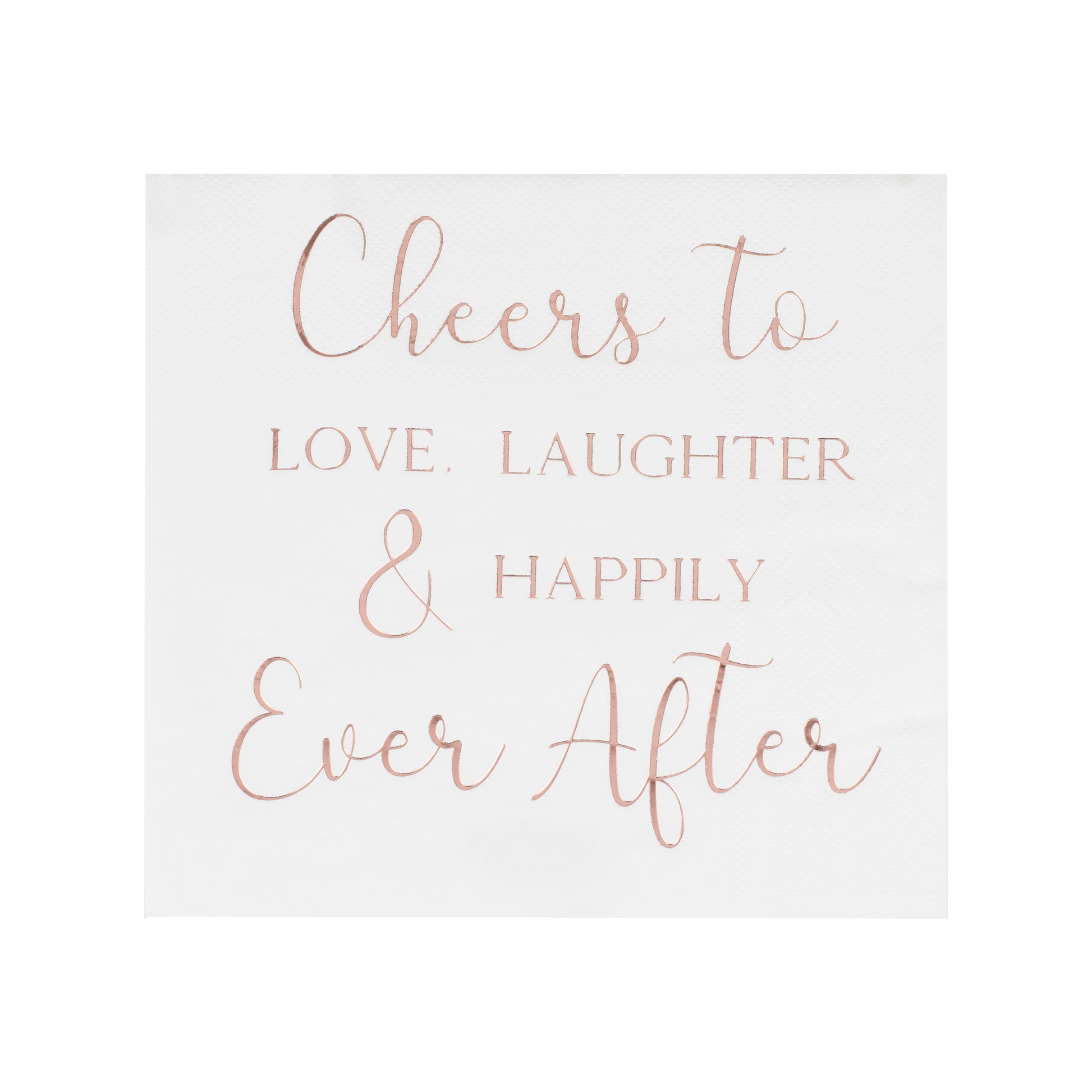 Say cheers to love laughter and happily ever after at your wedding with these stylish rose gold wedding napkins. Place these paper napkins on your tables for guests to admire.