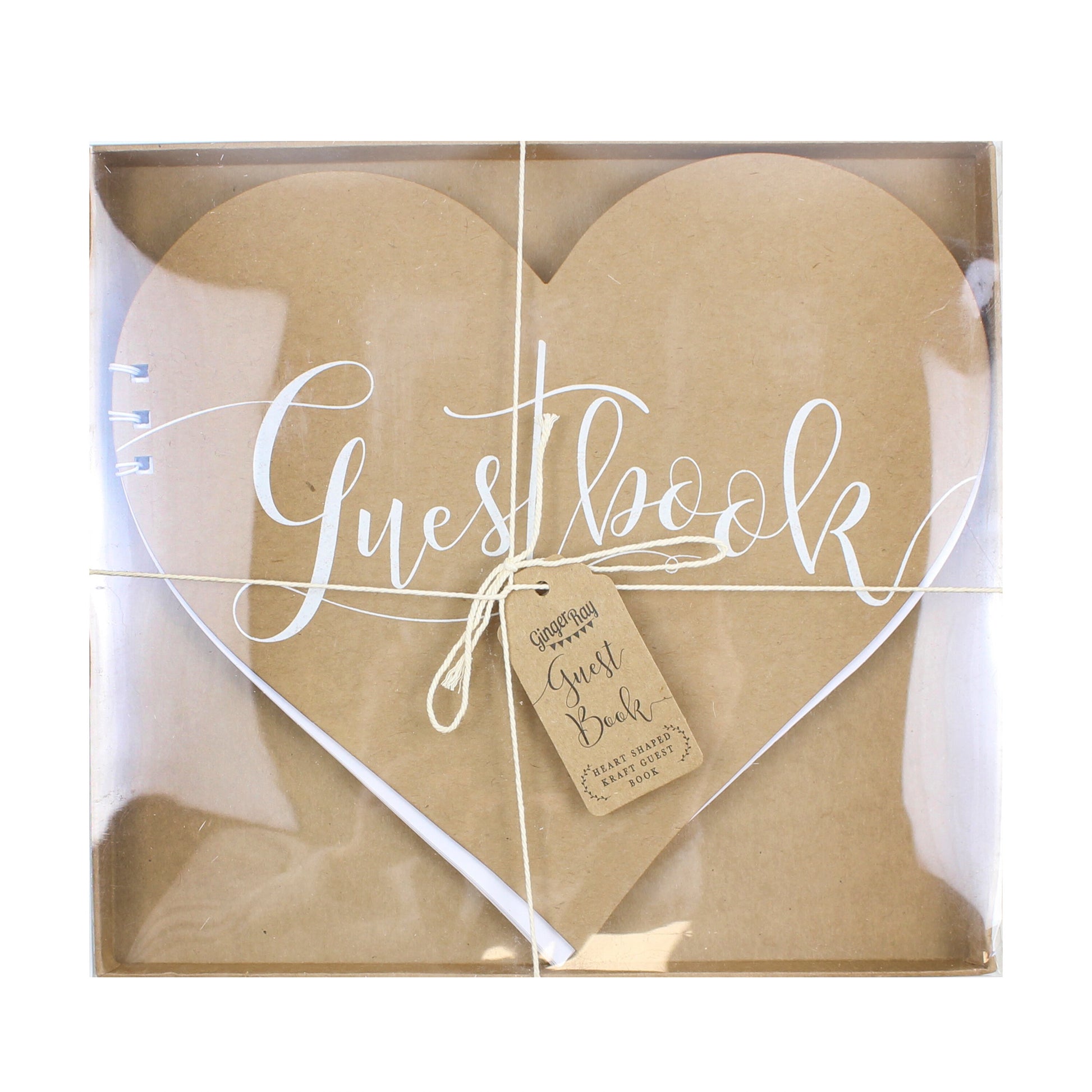 Kraft Heart Guestbook' is a rustic take on a wedding keepsake. Our beautiful heart shaped kraft guestbook looks stunning with crisp scripted white writing set against the kraft background - a perfect, adorable finishing detail you will be able to keep forever.