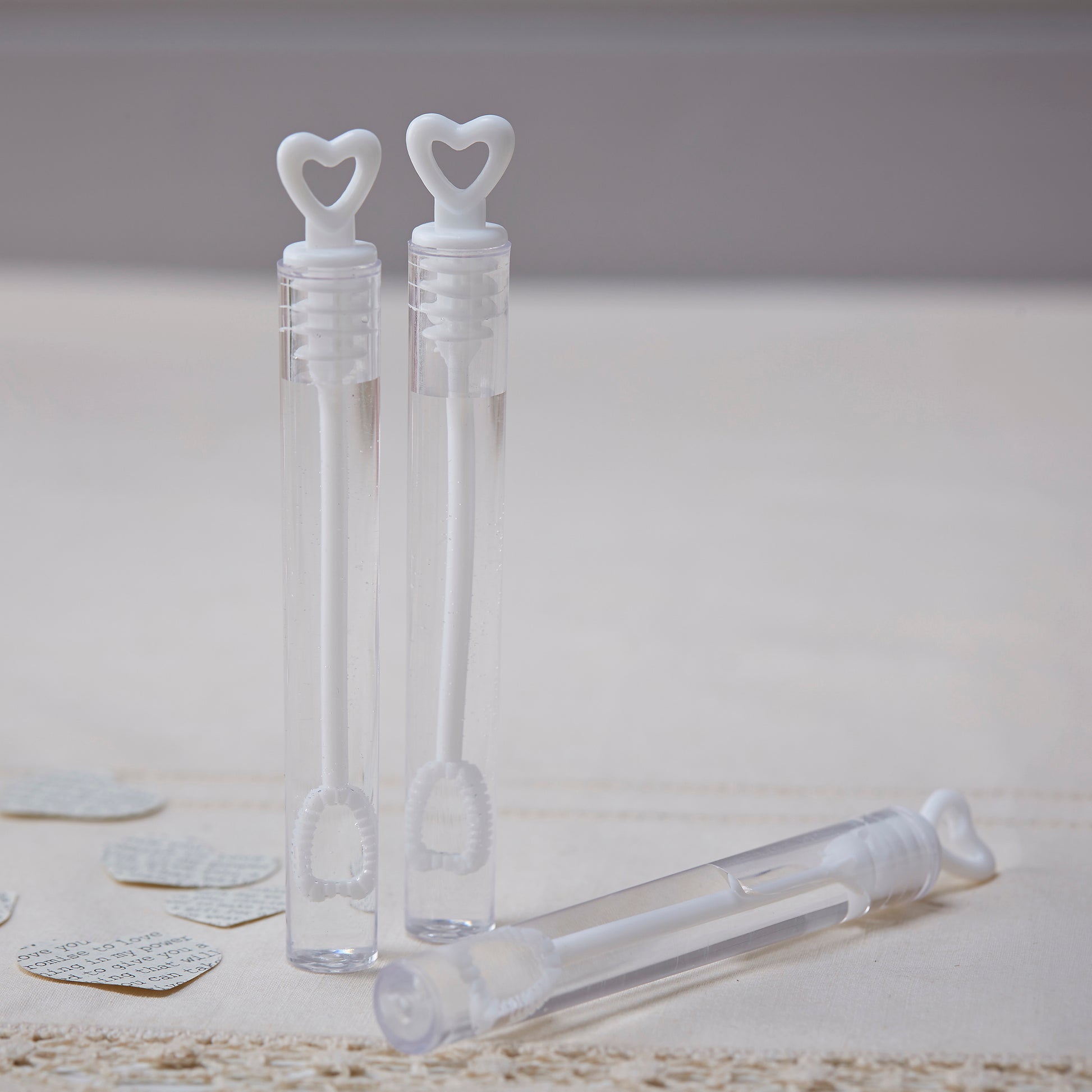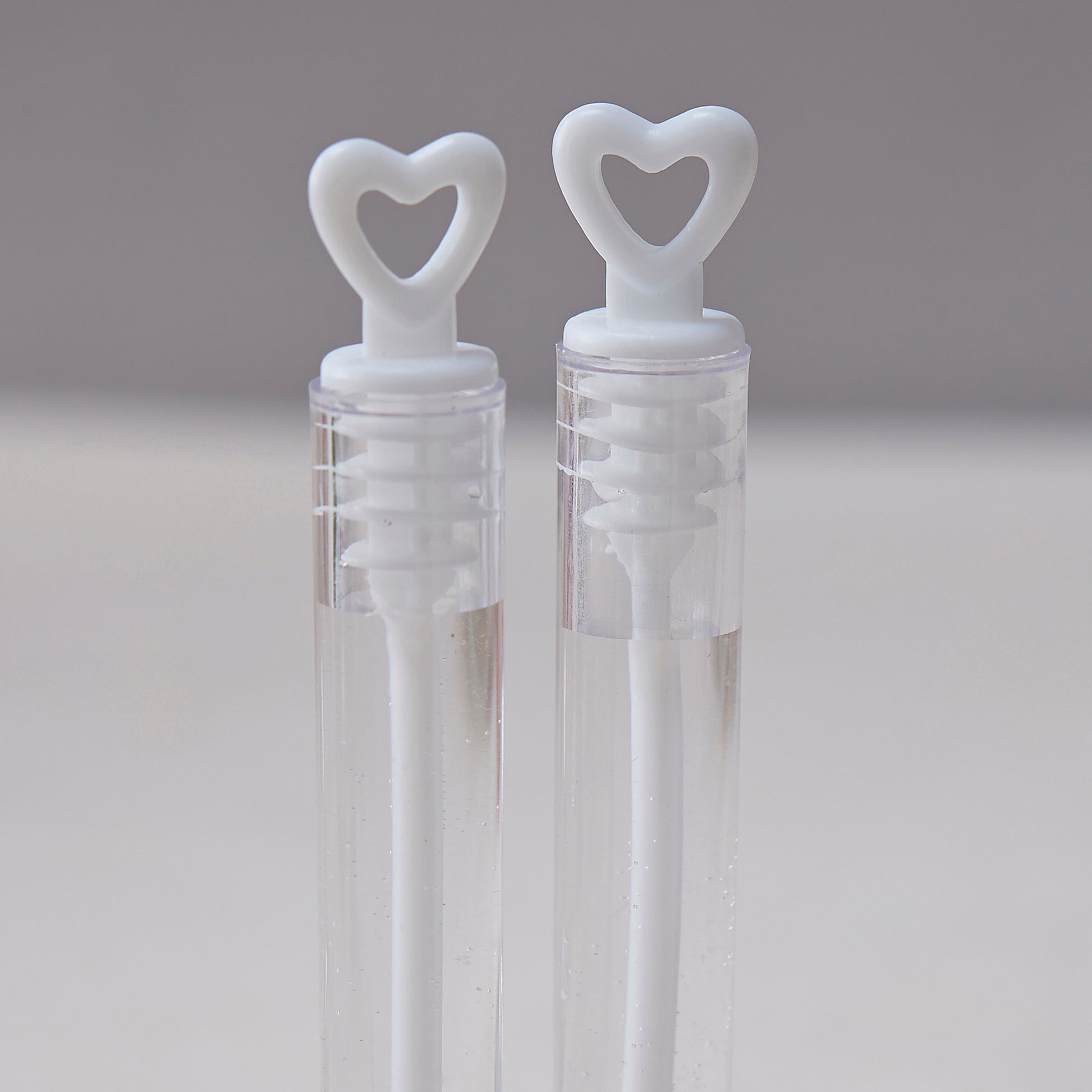 Pack includes 24 tubes of bubble wedding favours with a cute heart handle. Each bubble tube measures 10.5cm and contains 4ml liquid.