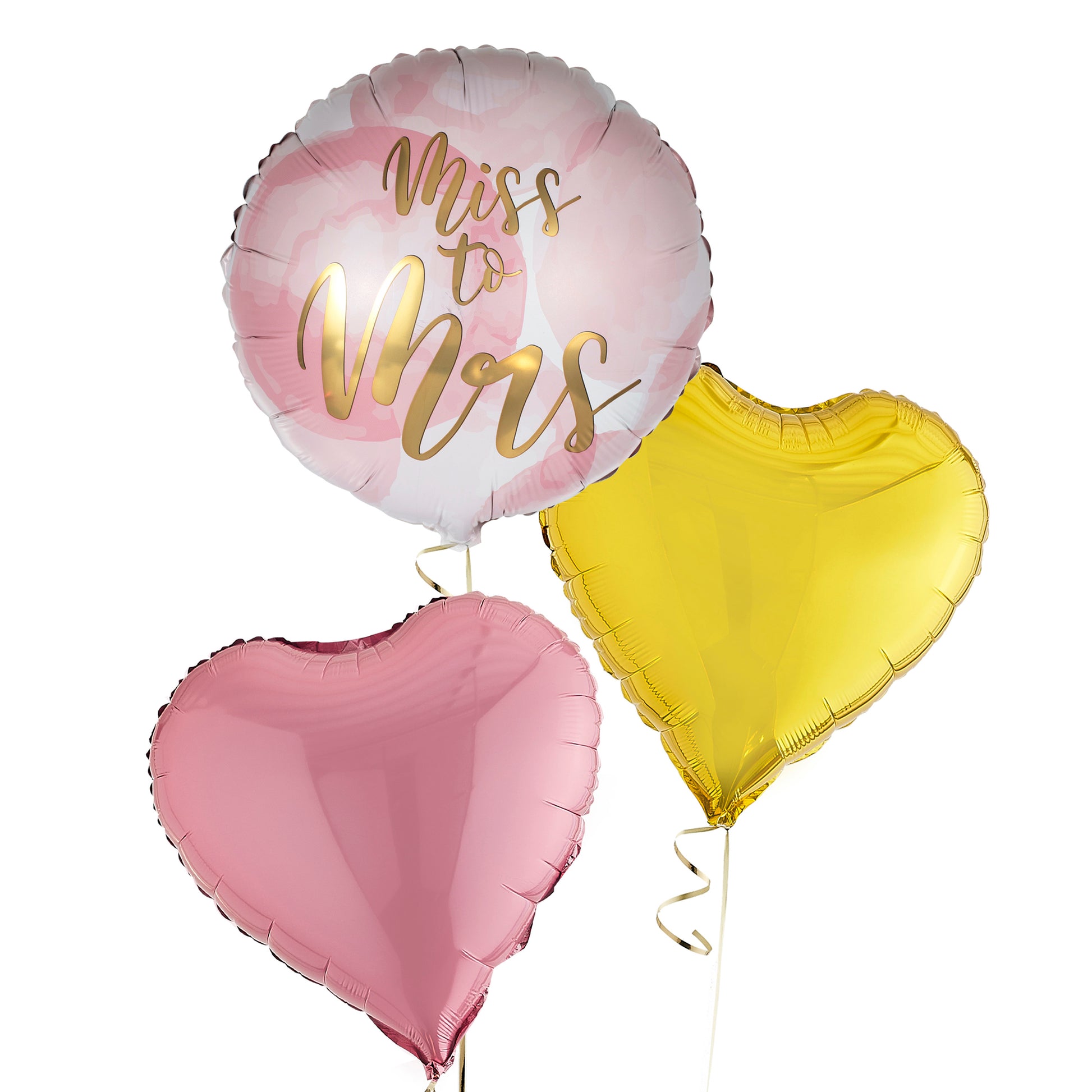 Remove the effort of having to inflate balloons yourself with our perfectly pink Bride to Be Balloon bouquet . We've taken all the hard work away, as these helium balloons come fully inflated in a box for the ultimate surprise. The helium balloons delivered are already assembled with ribbon and weights, so the receiver can simply open the box to reveal the bundle!