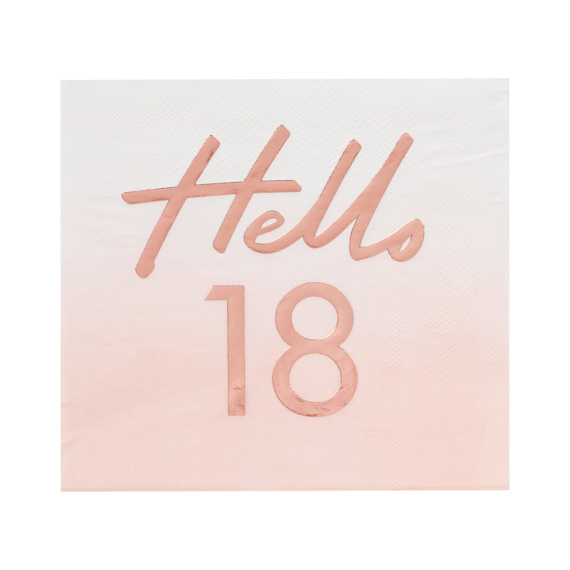 Celebrate your milestone birthday in sparkly style with these fab rose gold 18th birthday napkins. The rose gold foil will sparkle on as you party the night away - use in combination with our hello 18 balloons for a happy 18th birthday!