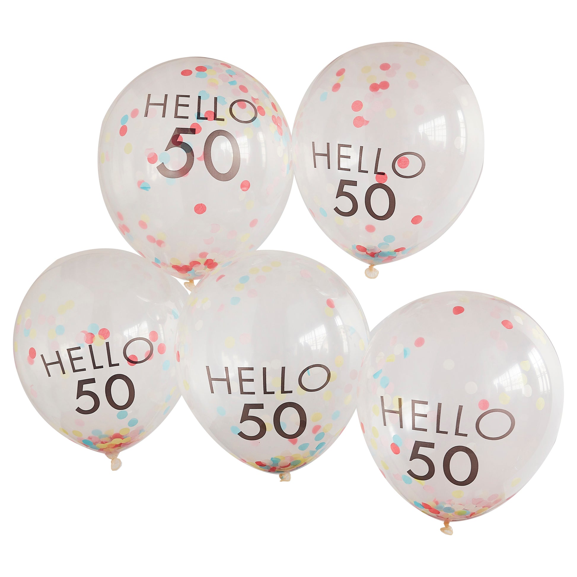 Hello 50 Rainbow Confetti 50th Birthday Balloons