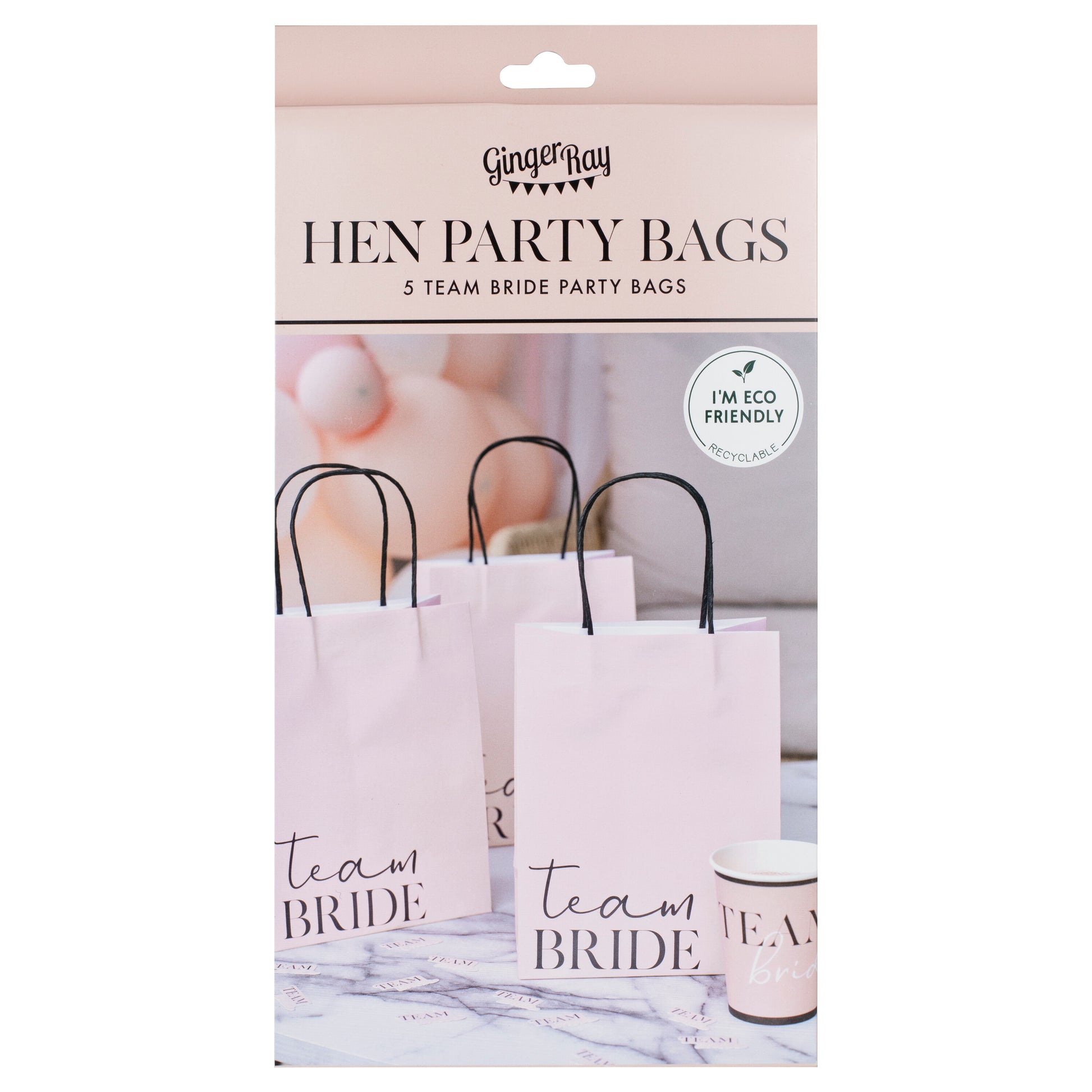 Each pack contains 5 x Team Bride Gift Bags measuring 21.5cm (H) x 16cm (W) x 5cm (D).