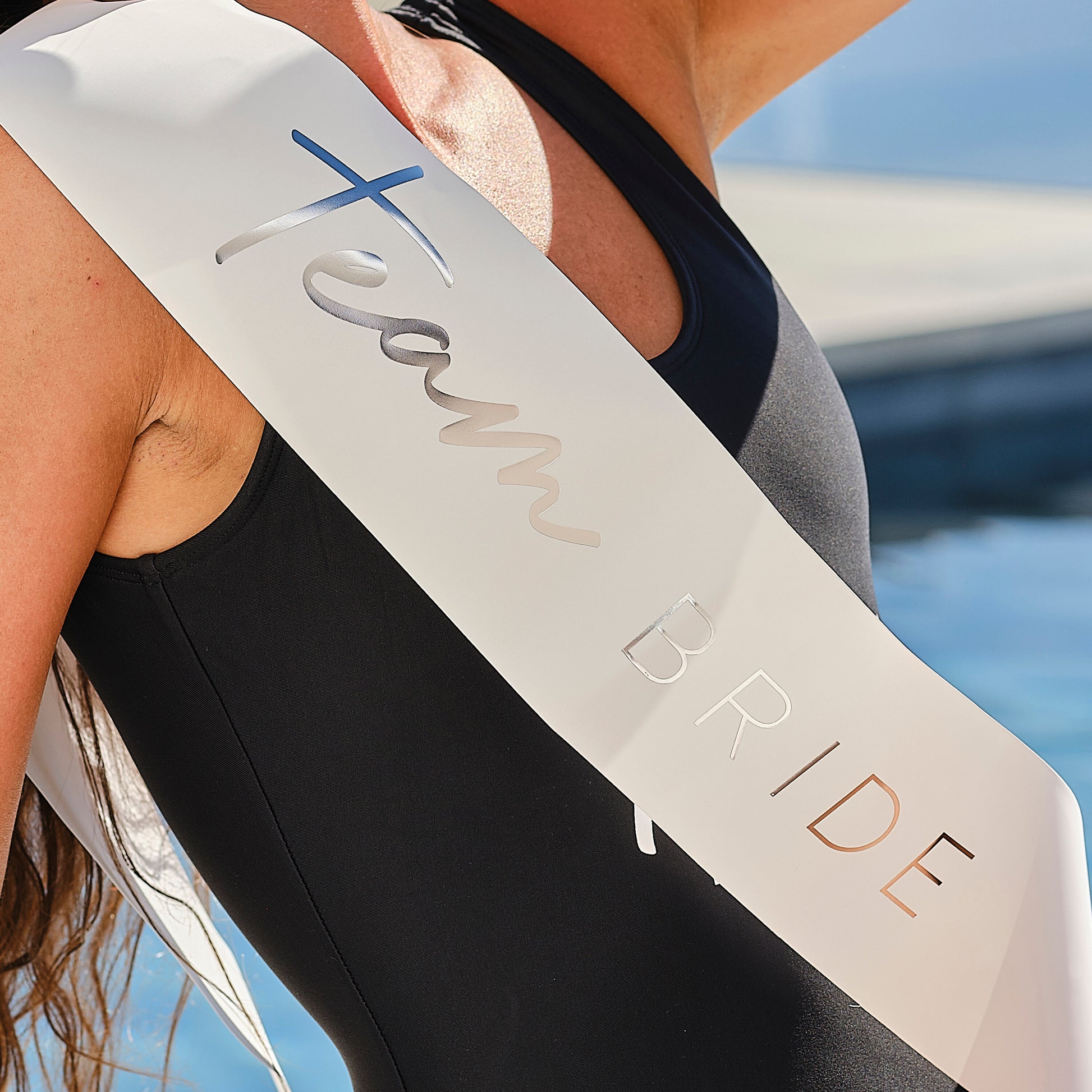 Dress your hens with these glamorous silver Team Bride sashes.