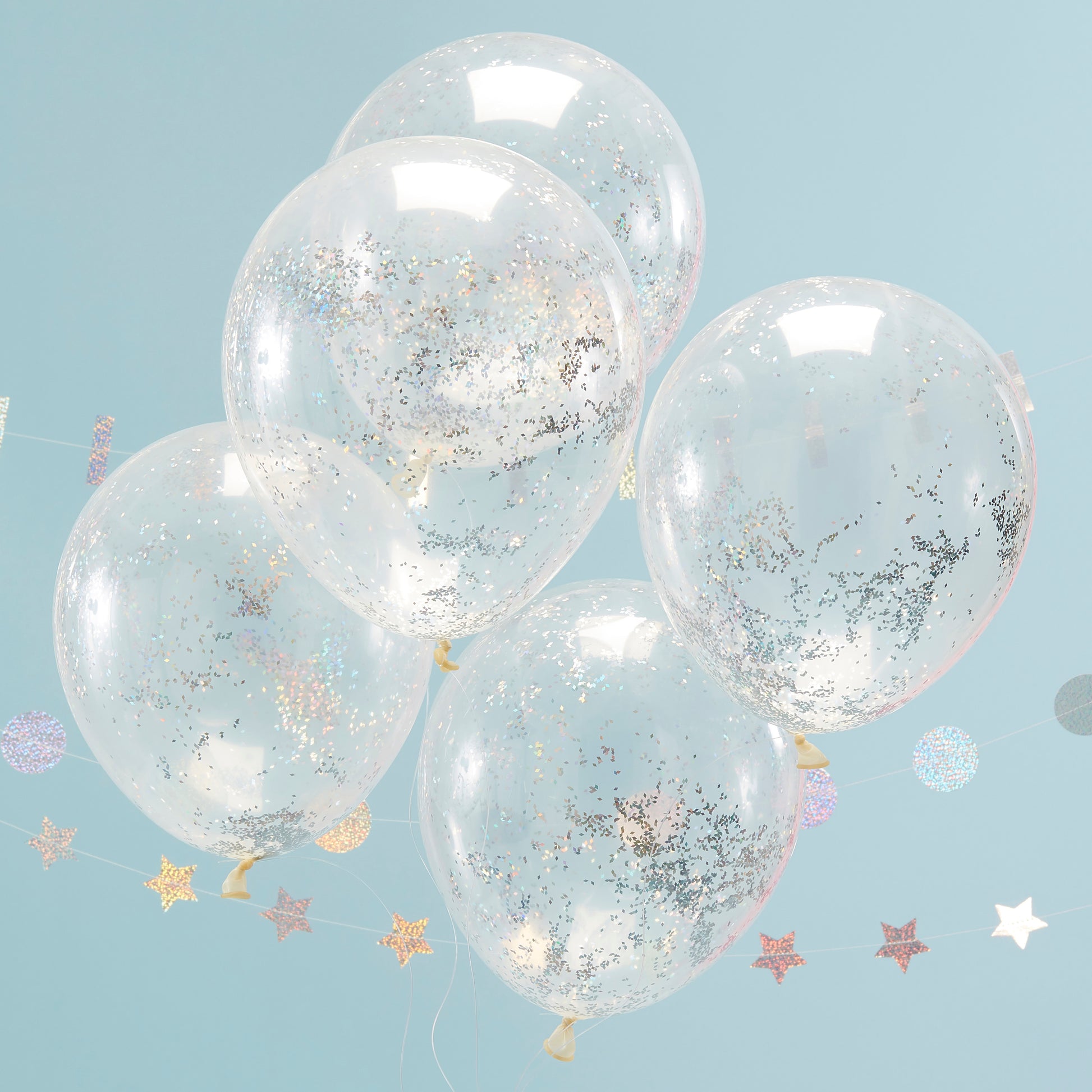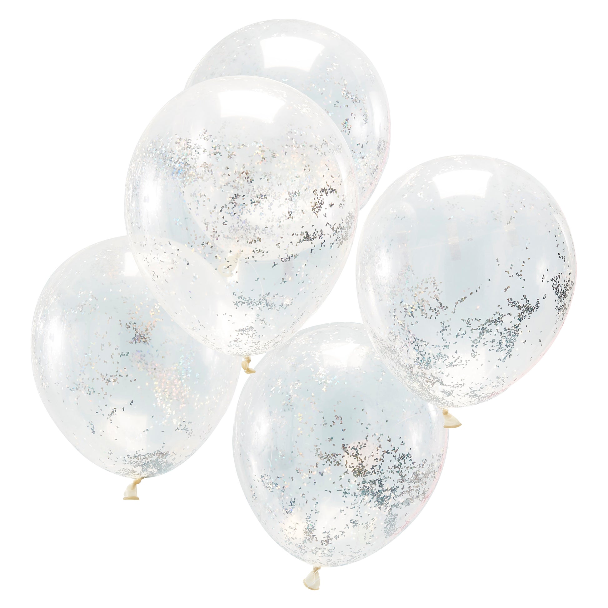 Clear balloons are filled with stunning holographic Glitter confetti pieces!