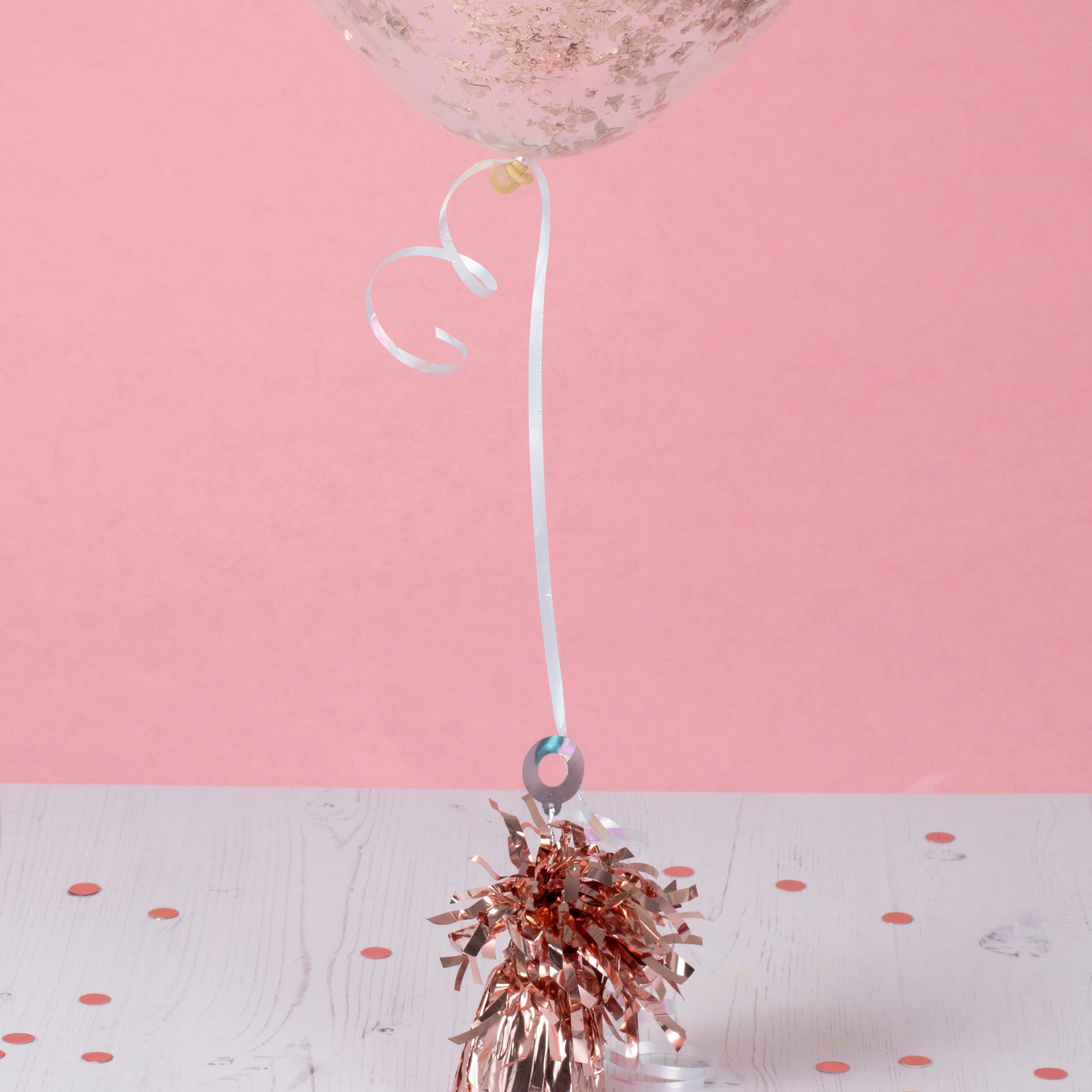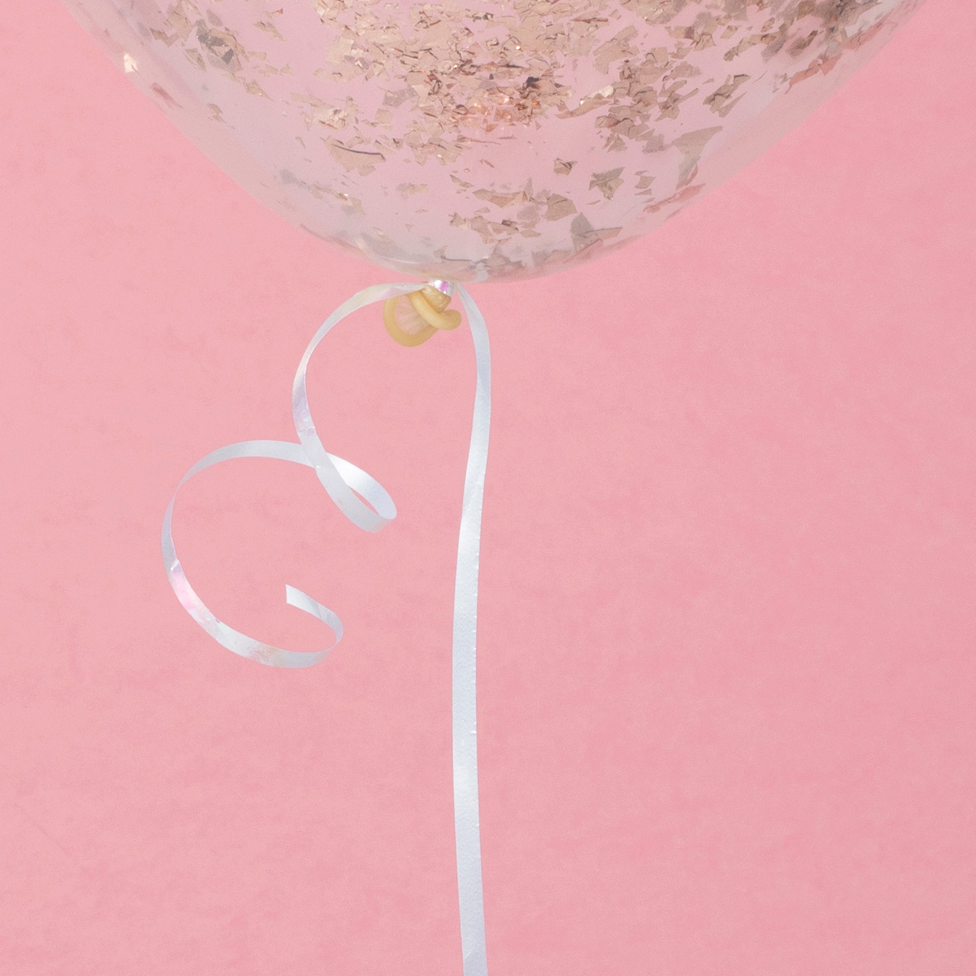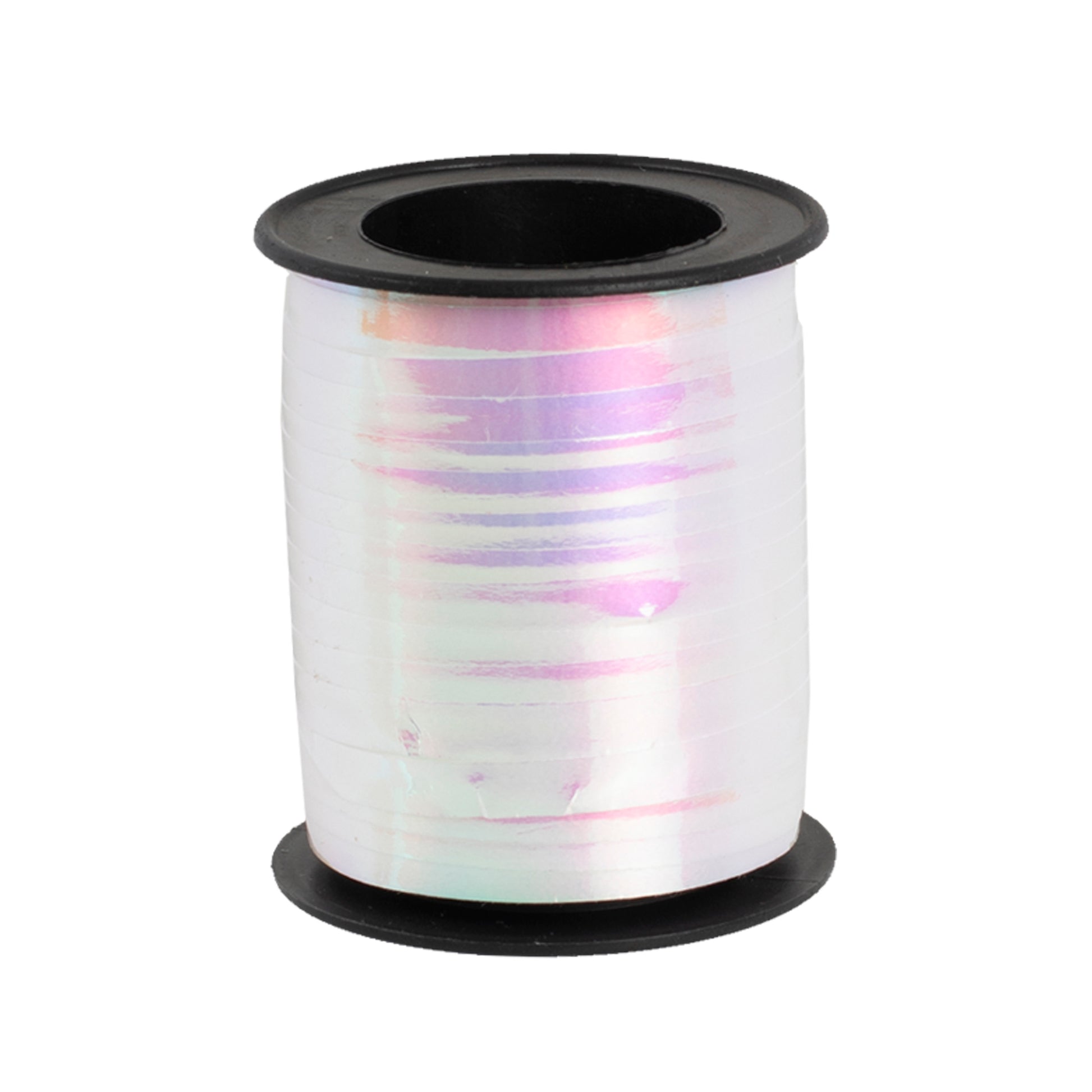 Keep it all together with this simple but effective iridescent curling ribbon. Attach this ribbon to the tied ends of your balloons and create the perfect party balloon bundle. Attach Helium filled balloons to a weight or a secure surface to make sure your balloons don't fly away! You can also use the ribbon to create clusters of air filled balloons and hang them.