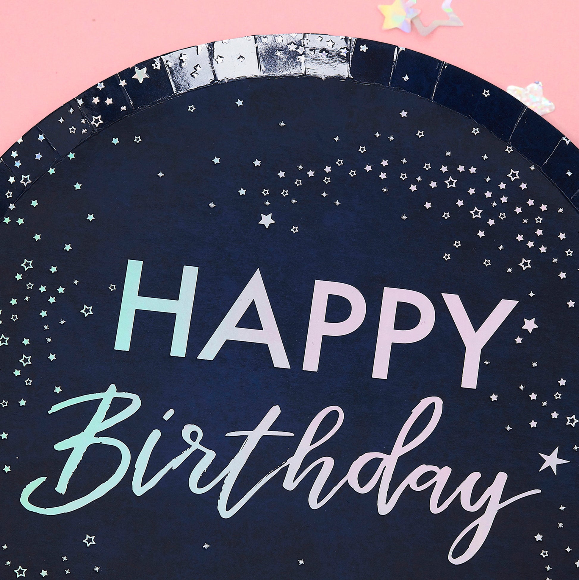 These stunning silver iridescent foiled Star Happy Birthday Plates are perfect for your next birthday celebration. Each happy birthday plate has a stunning foiled star design which will shine on your birthday party table set up.