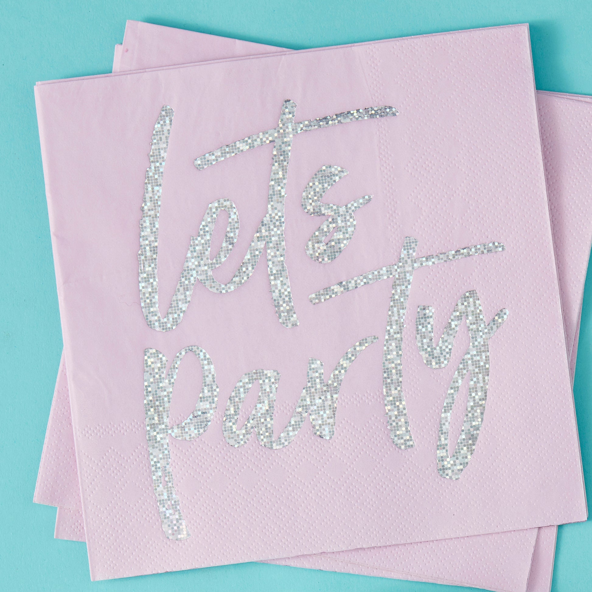 Our foiled 'Lets Party' napkin will have all your guests in the party spirit! A fun napkin - the foiled iridescent 'lets party' writing will look stunning as guests enjoy delicious treats! - perfect for the dancing queens who don’t want to leave the dancefloor!