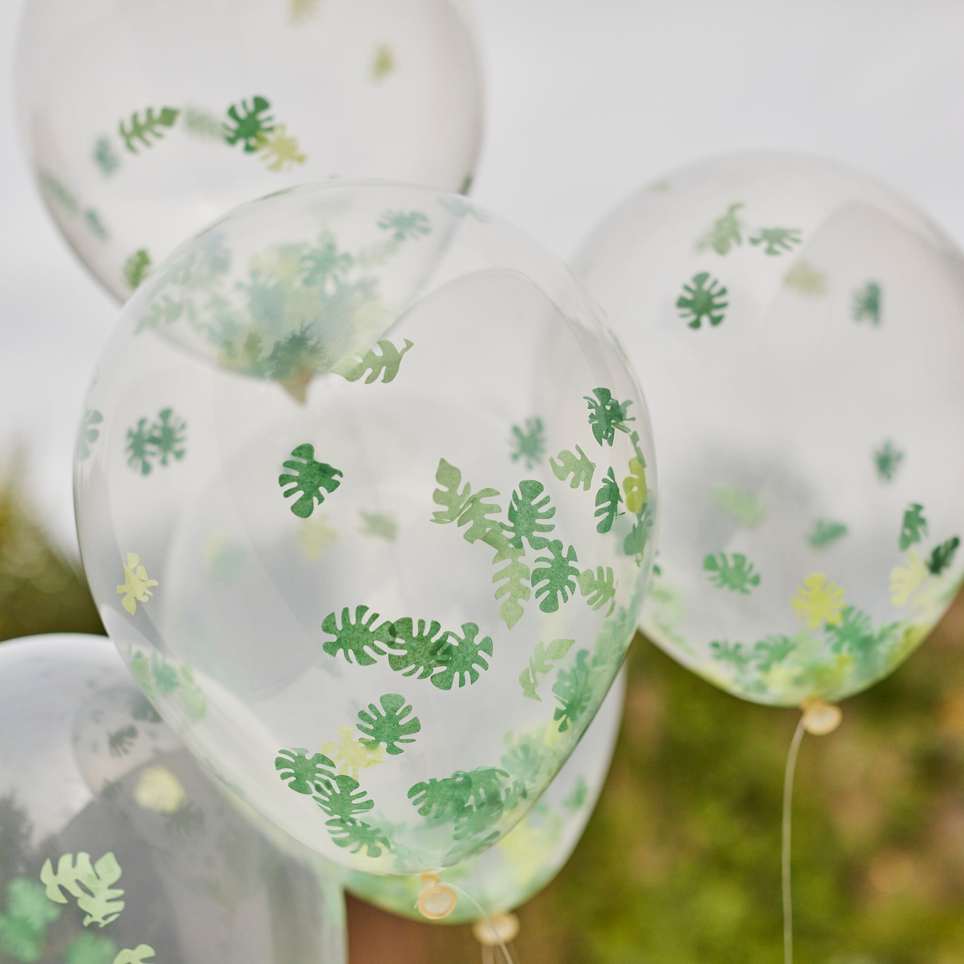 Decorate your jungle themed birthday party or celebration with these jungle themed balloons! Wow your friends and family with these leaf confetti balloons, perfect for any special occasion.
