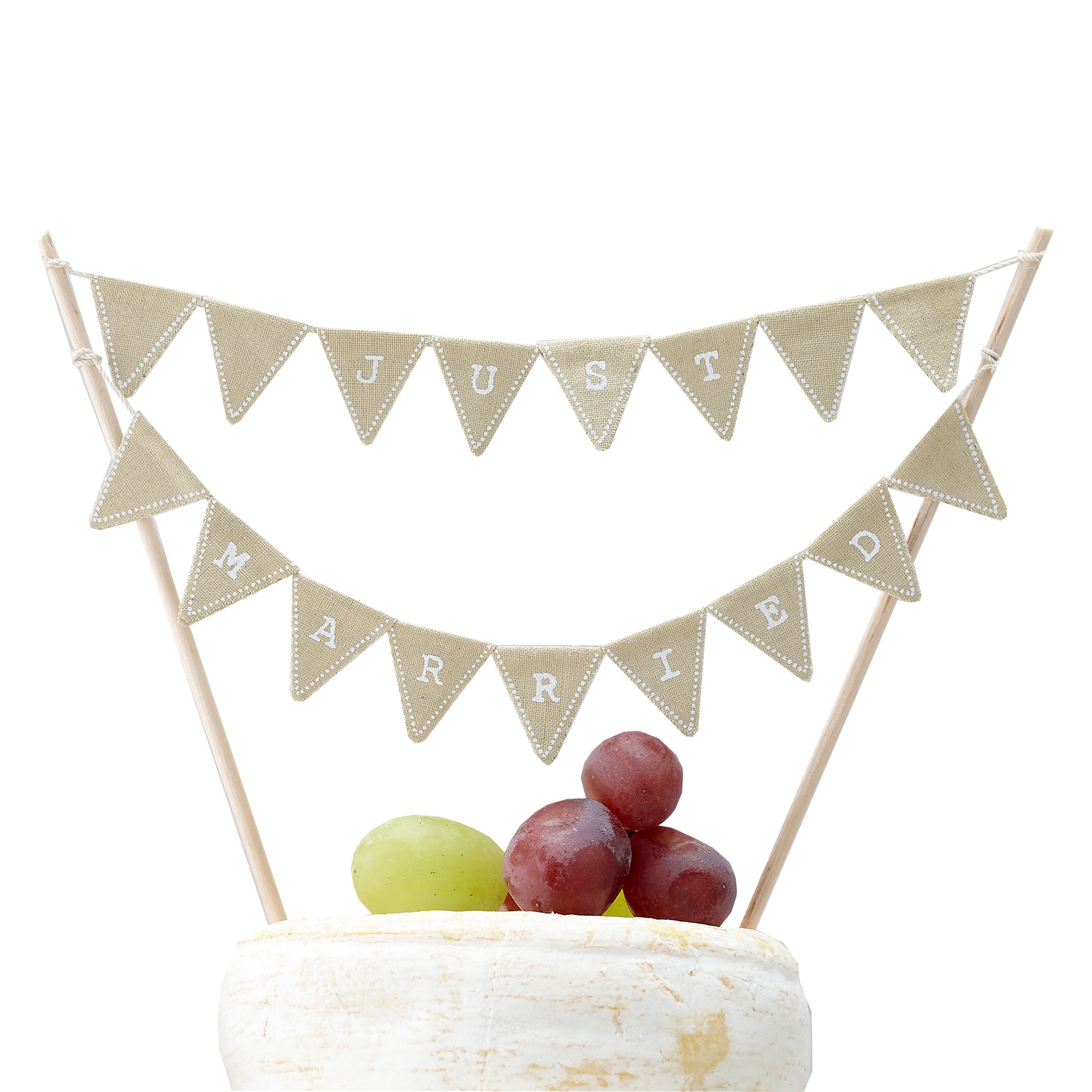 Cake bunting measurements: H17cm W 17-24cm adjustable.