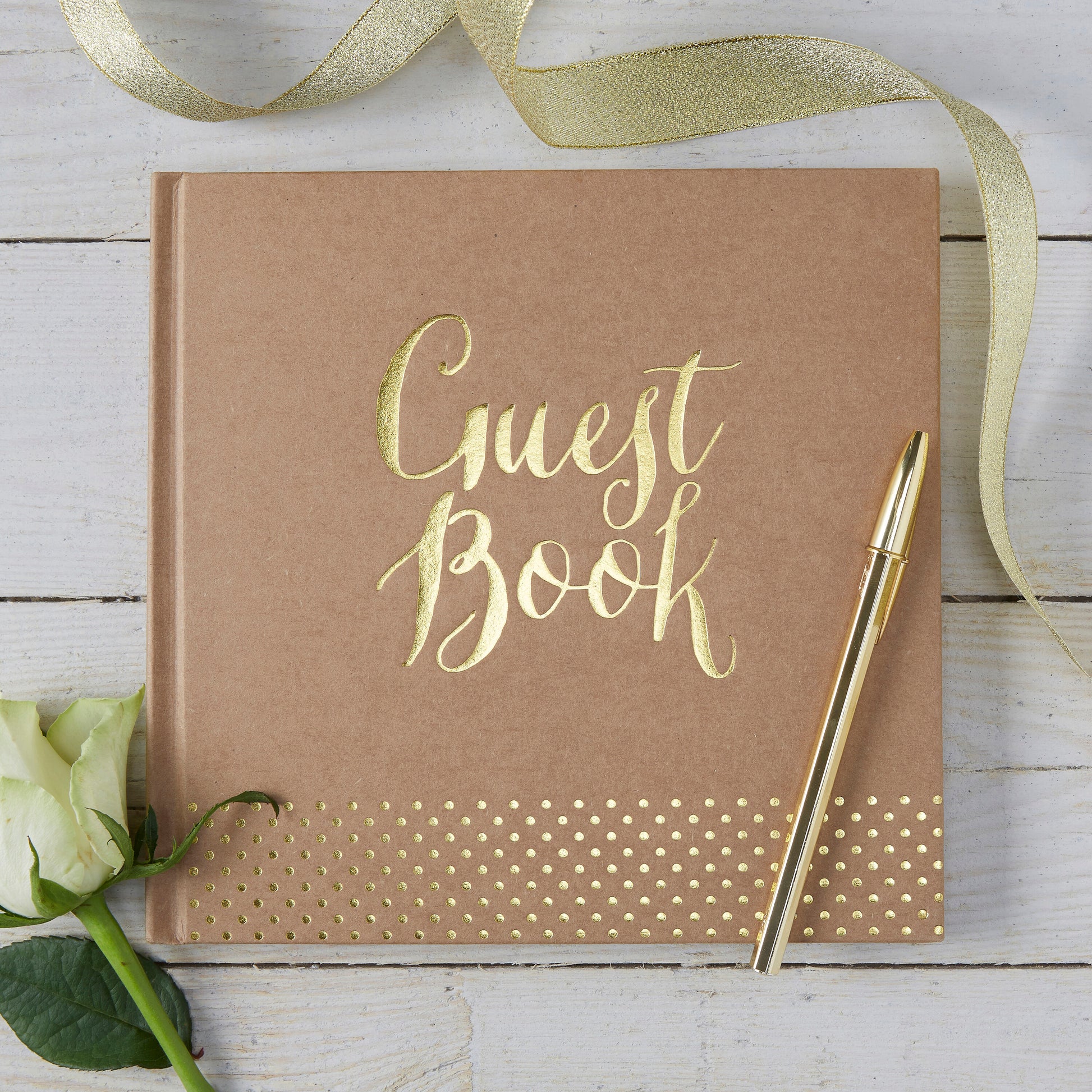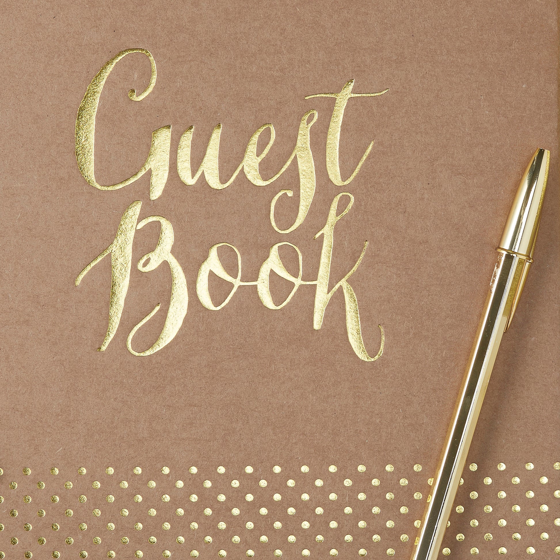 Beautifully decorated kraft book with gold foiled "Guest Book" on the front. The perfect memory book to look back on - the simple design means this can also be used as a cute baby shower guest book!