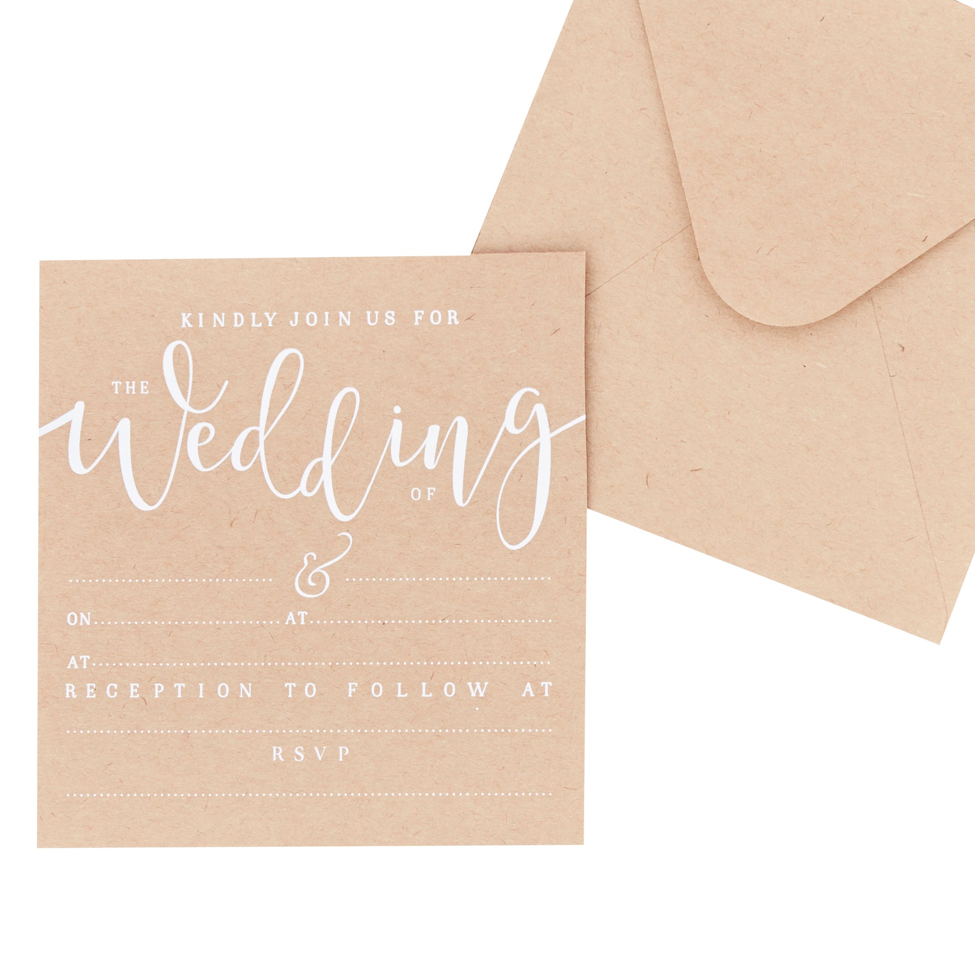 Use our 'Kraft wedding Invitations' to invite your loved ones to share your special day. The beautiful kraft finish and white scripted writing looks irresistible giving a rustic country chic vibe. Your family and friends will adore opening these - creating much excitement for your wedding day.
