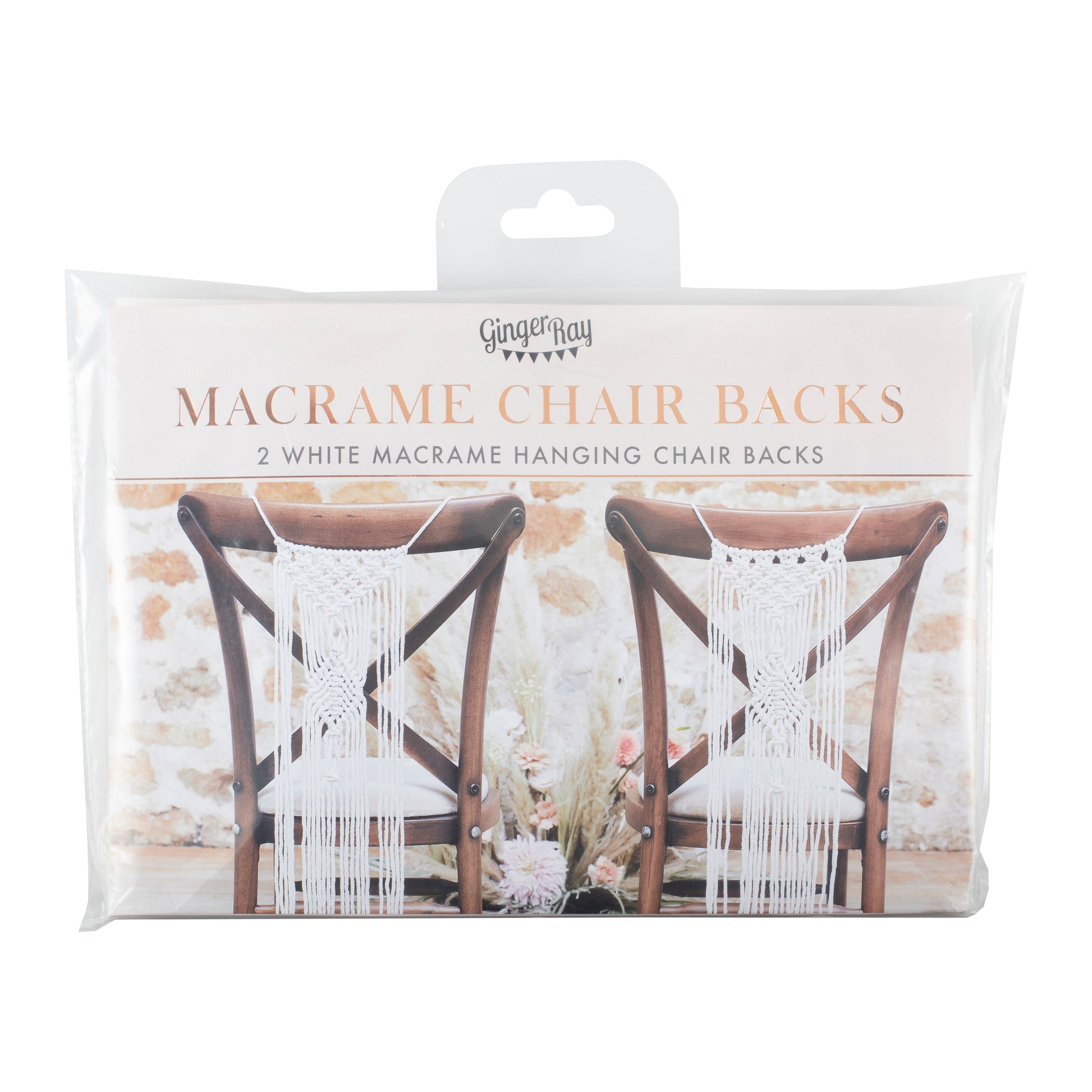 Decorate the top table with these gorgeously simple Macrame Wedding Chair Decorations. The perfect addition to a boho wedding to mark the new couples place at the table.
