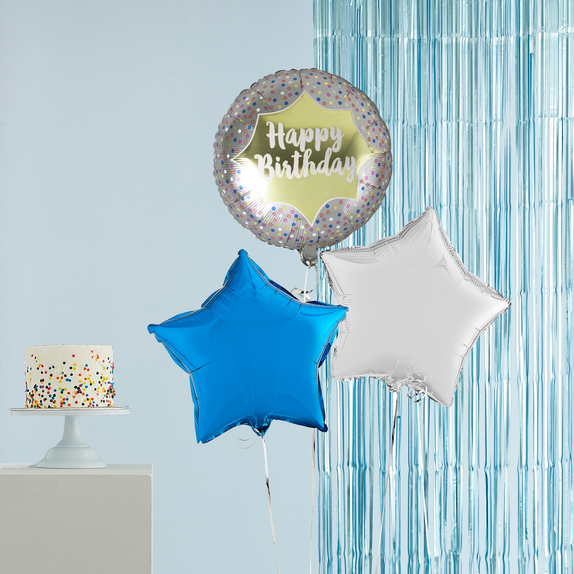 1 x Blue Metallic Star Balloon 1 x Silver Metallic Star Balloon