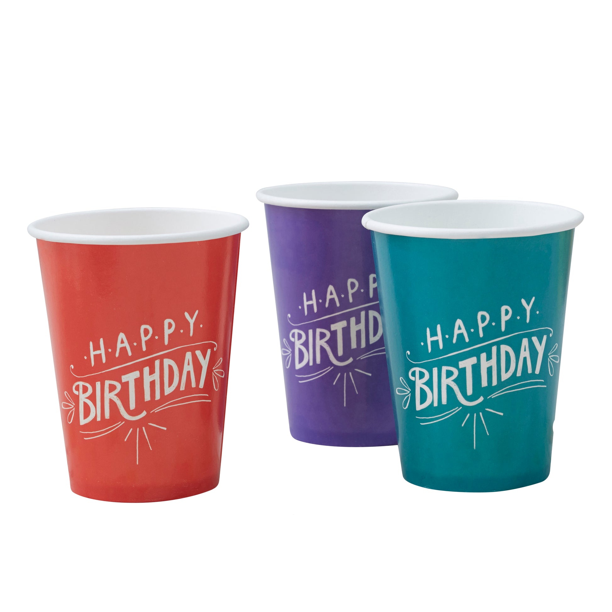 Each pack contains 8 x 9oz paper cups. In Red, Teal and Purple. They add the perfect pop of colour to any birthday celebration.