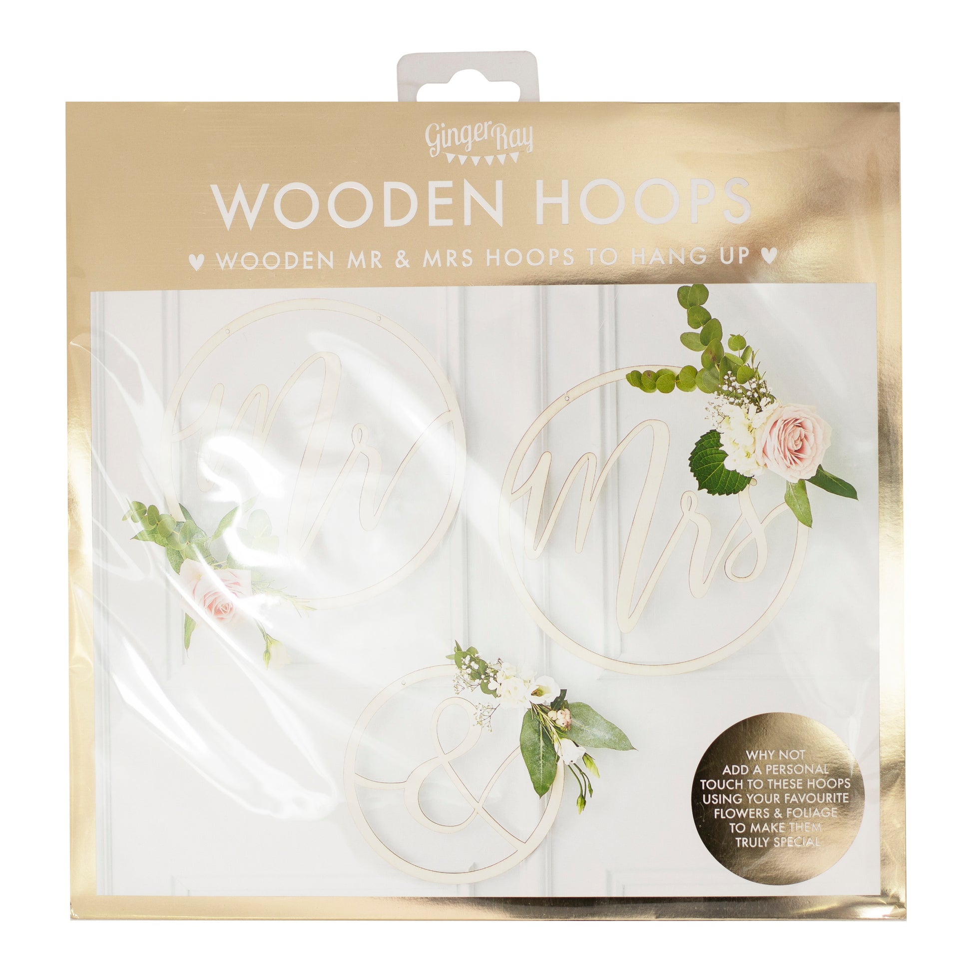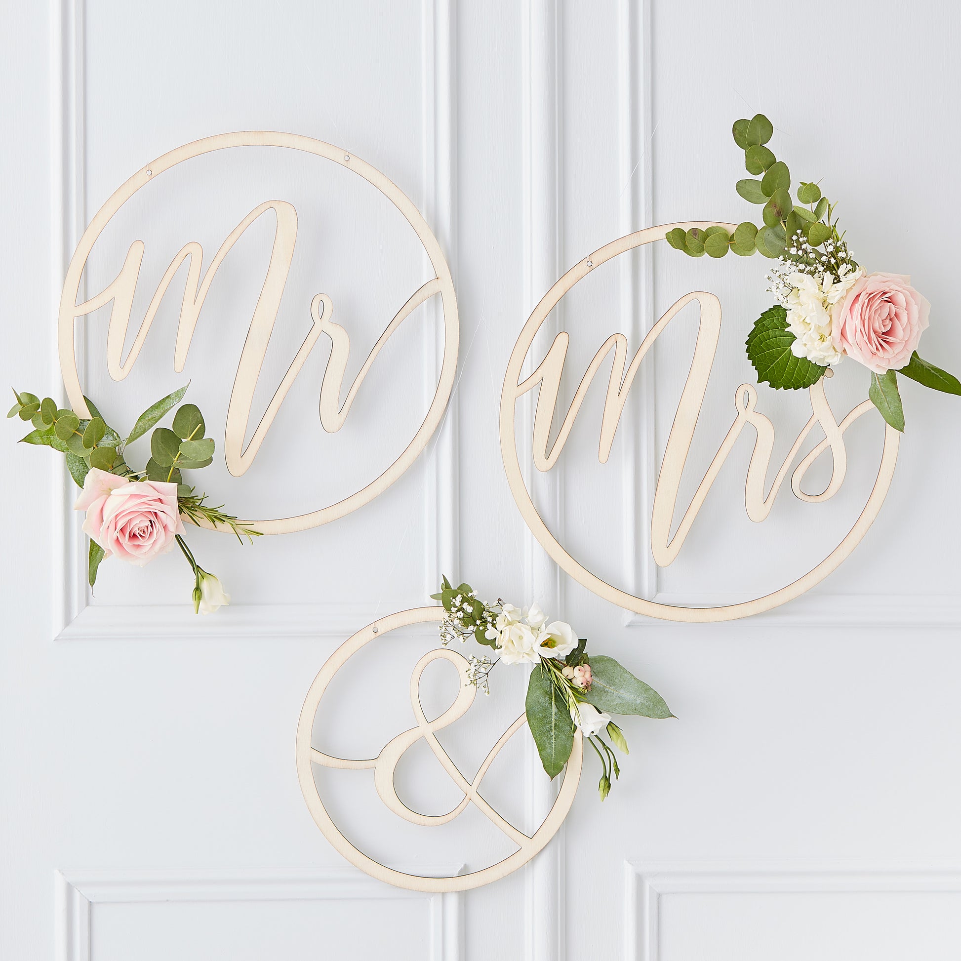 Create a stunning focal point or background on your big day with these wooden Mr and Mrs floral hoops. Perfect to wrap your favourite flower or foliage around the scripted letters to match your wedding theme.