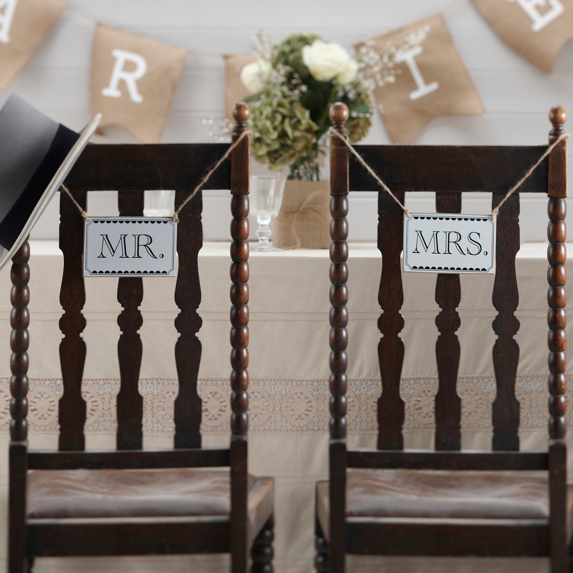 Our vintage wooden Mr & Mrs Chair signs are great to hang on the back of the happy