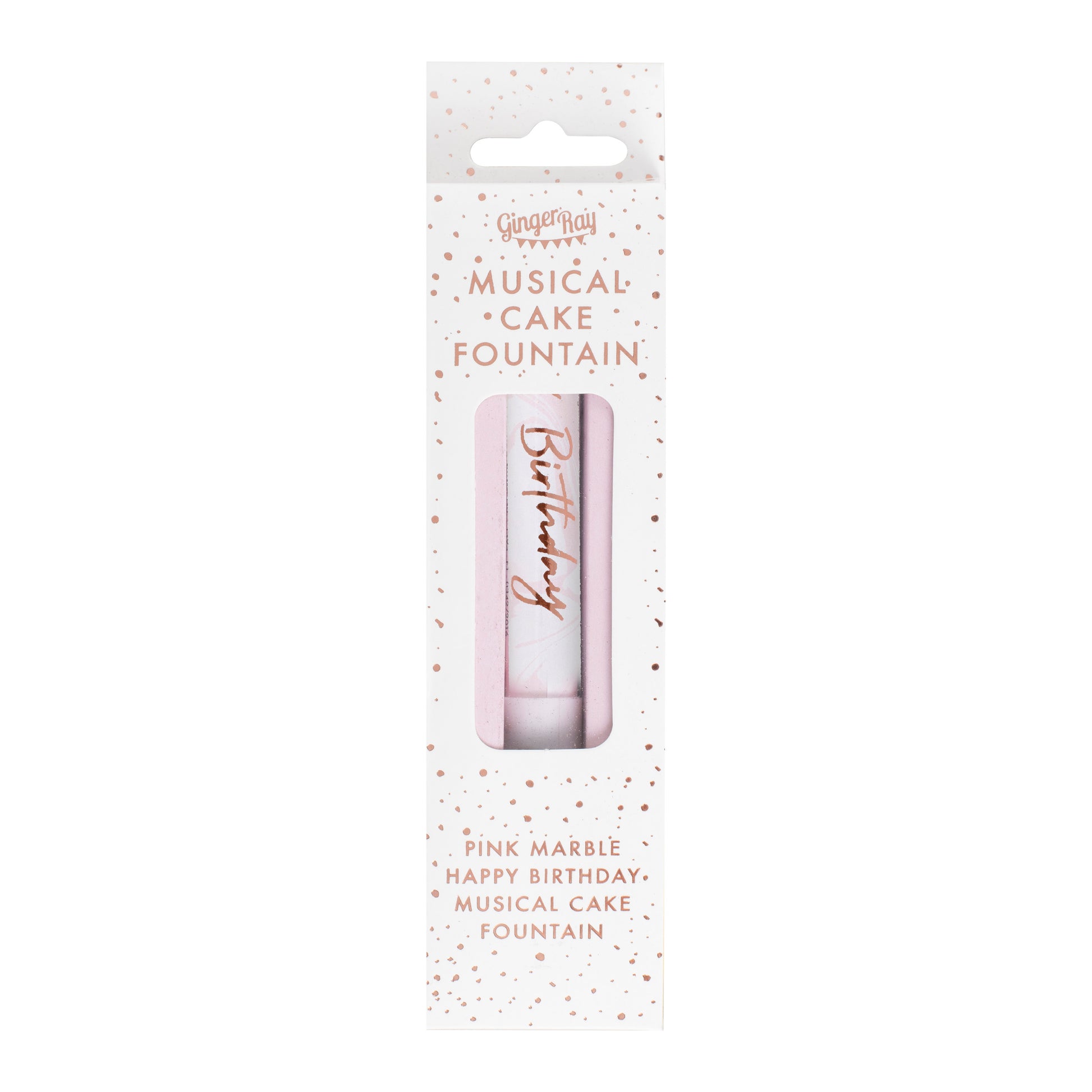 1 x Pink Marble Musical Rose Gold Birthday Cake Fountain, measureing 12cm (H).