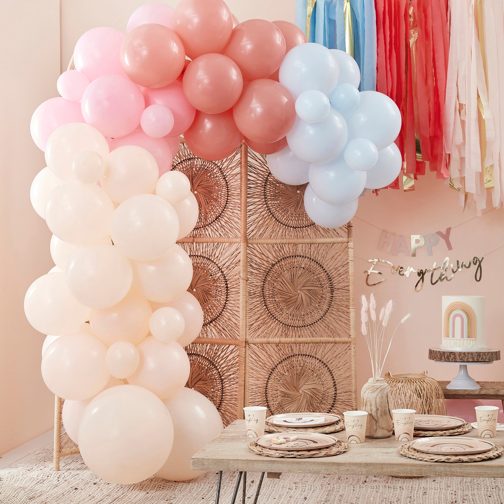 This Balloon Arch Kit is filled with beautiful pastel shades to fit in with your theme to celebrate absolutely everything! The peach and pink colour combination is the perfect fit to compliment your party decorations.