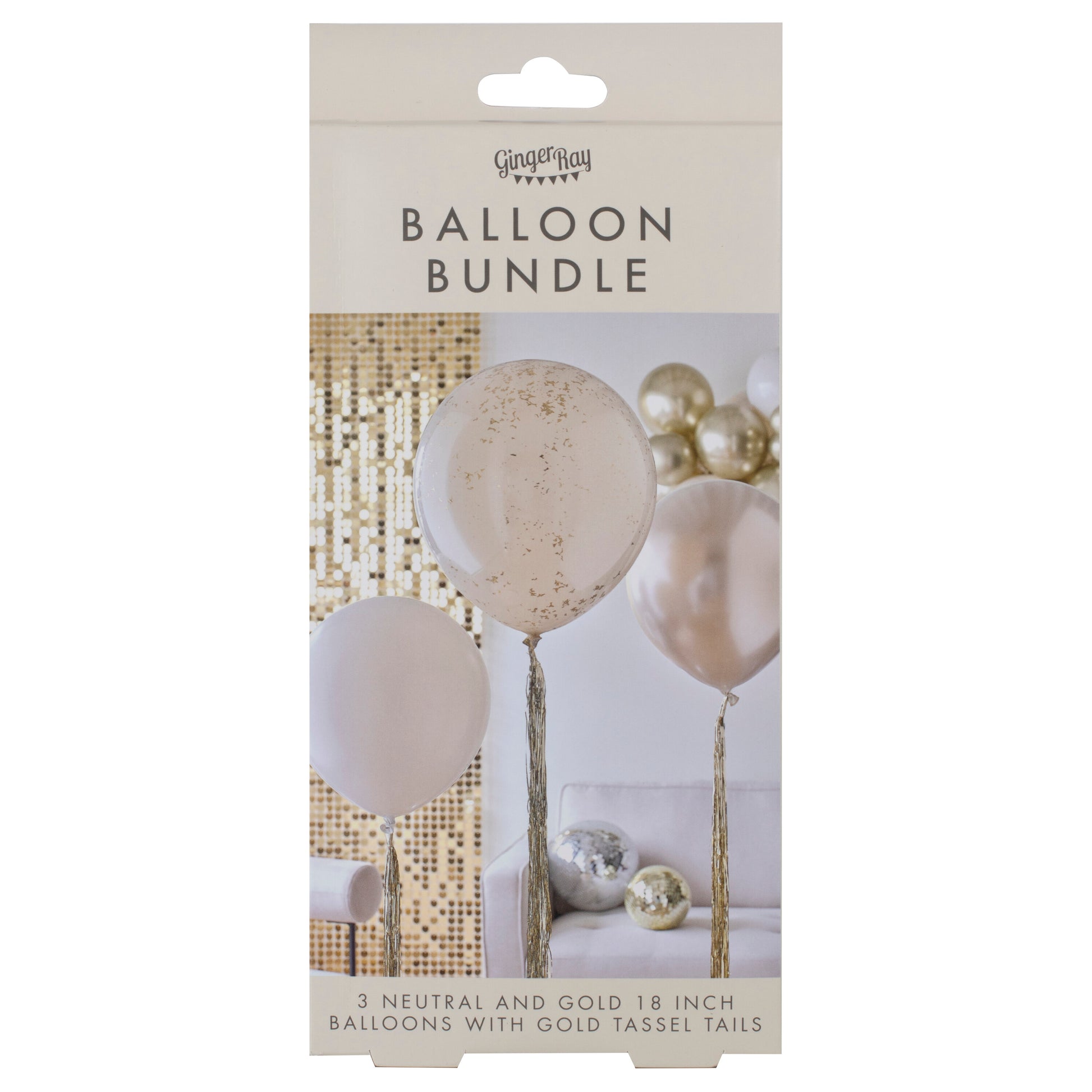Neutral and Gold Balloons with Gold Tassel Tails