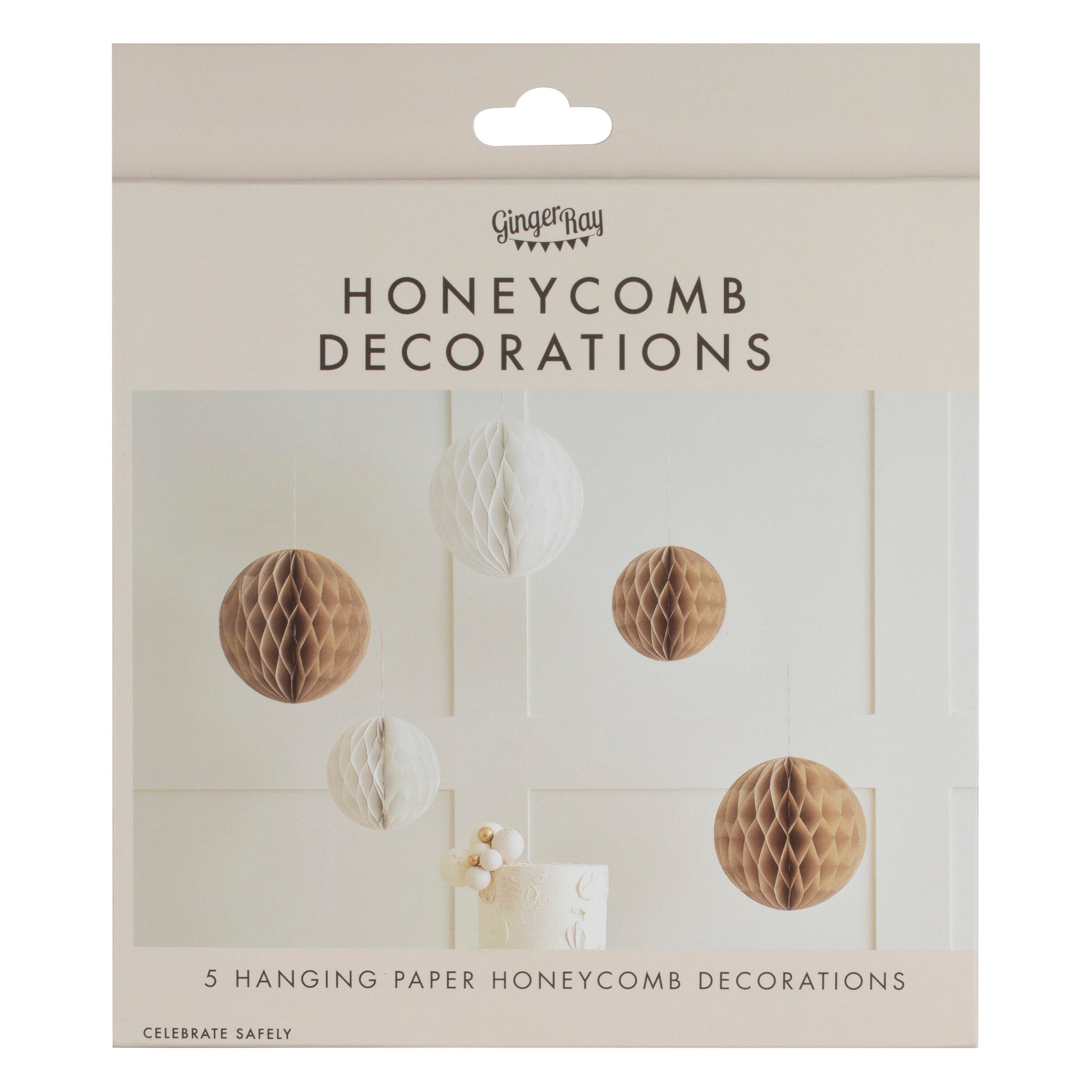 Decorate your home or the party venue with these gorgeous neutral honeycomb hanging decorations.