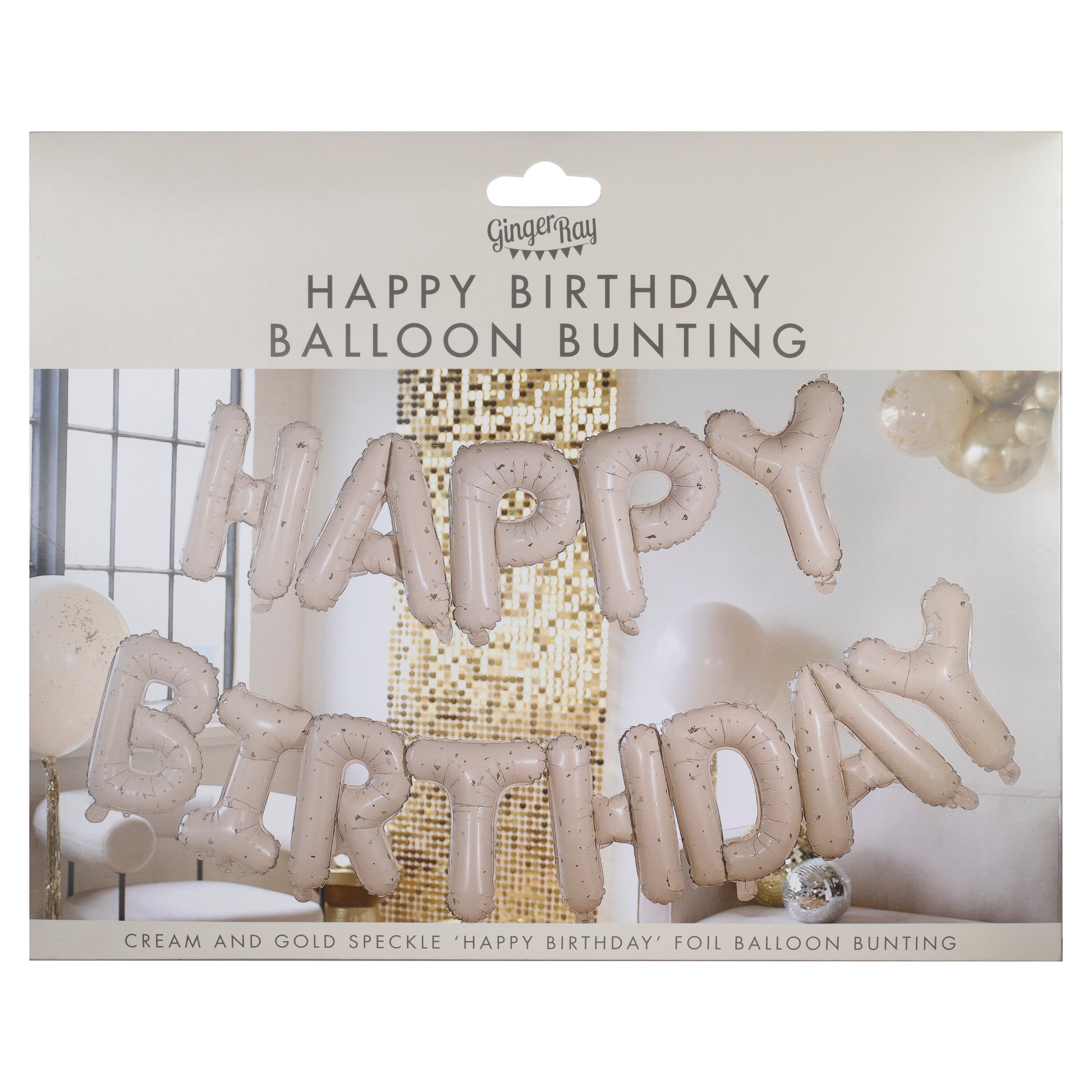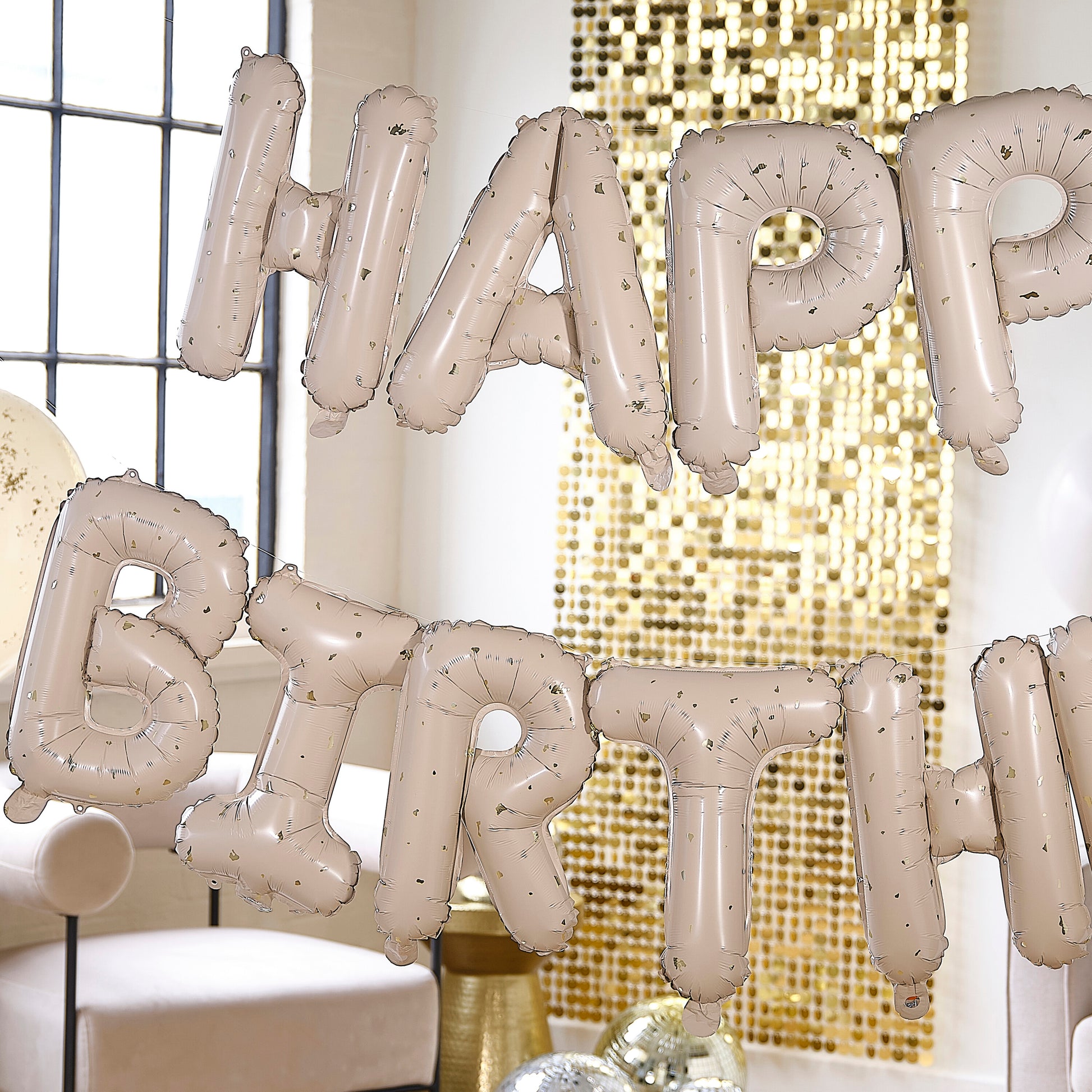 Nude and Gold Speckle Happy Birthday Balloon Bunting