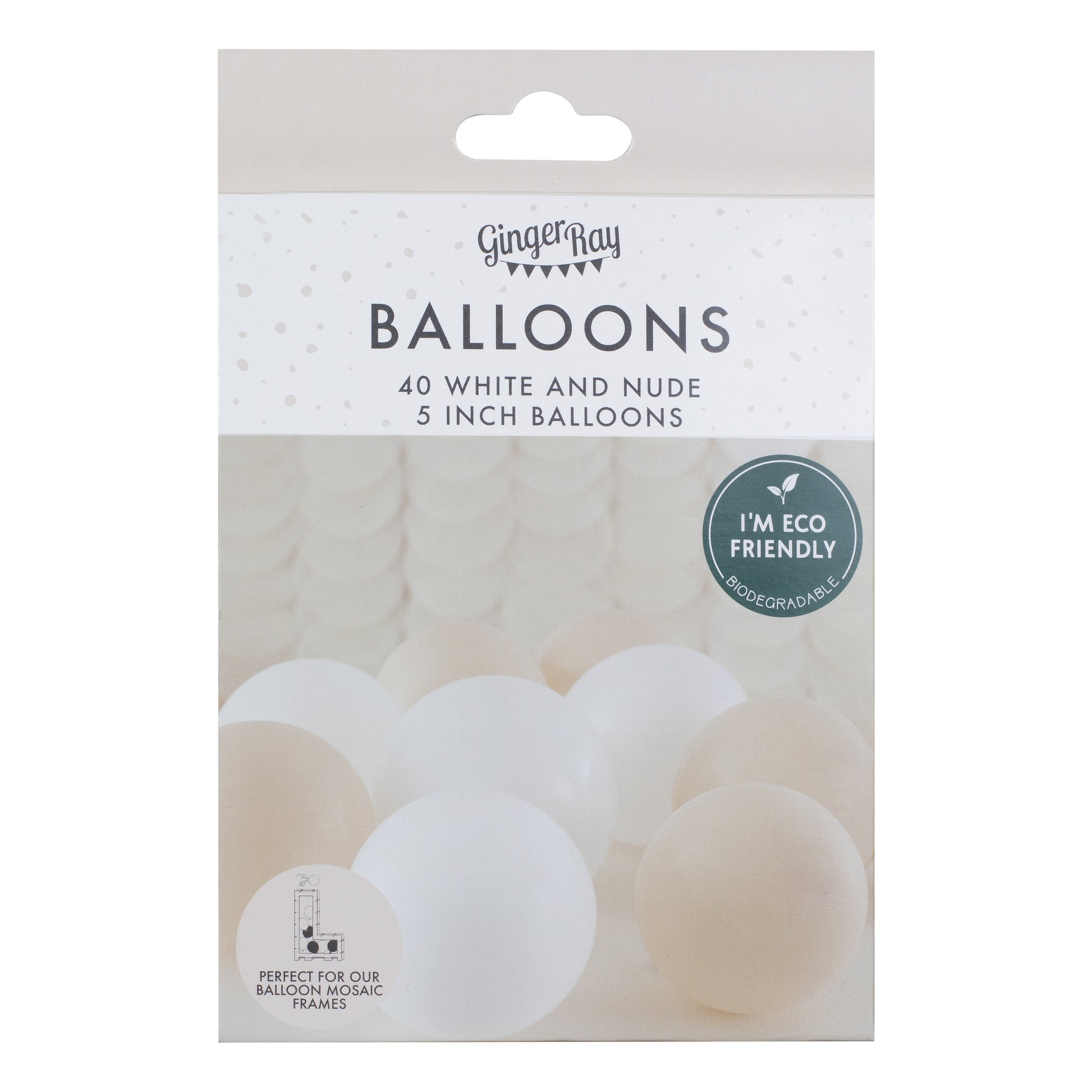 40 x 5" balloons, including 20 x white and 20 x nude.