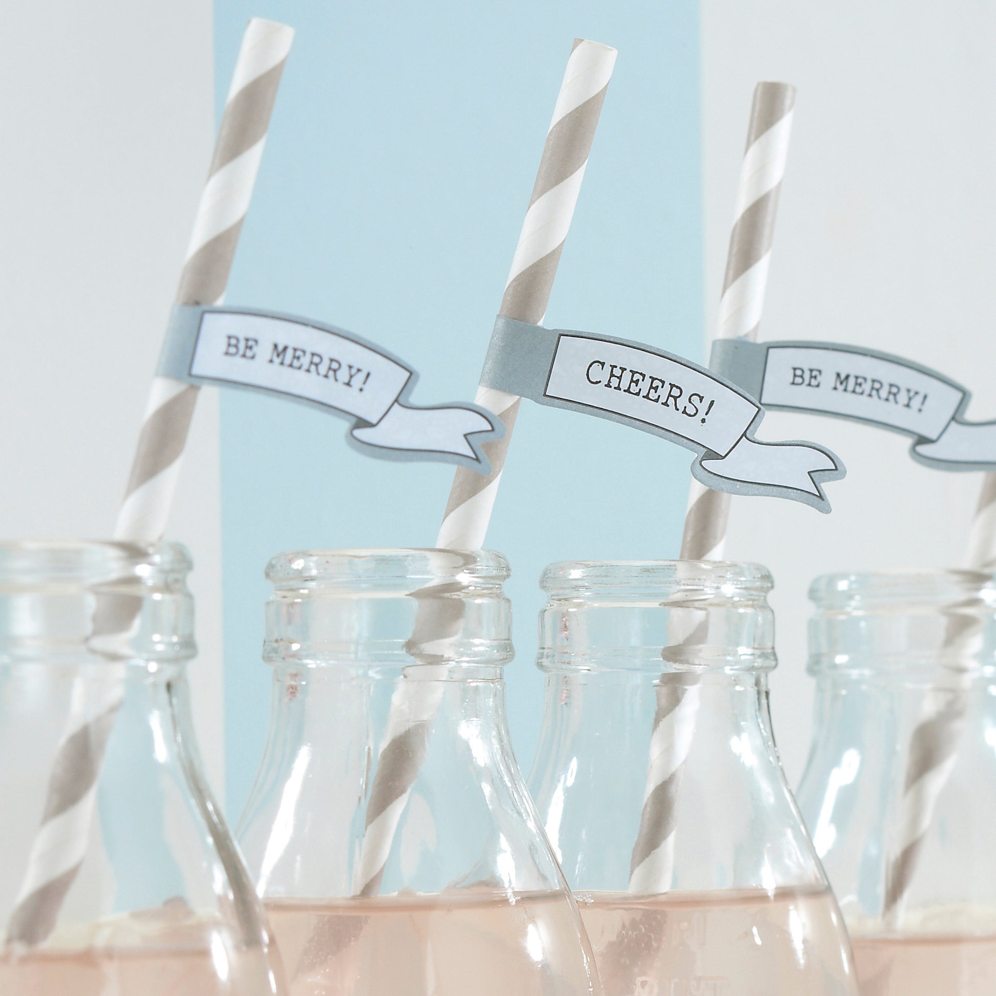 Straws with a difference! Striped paper straws each with a pretty little flag reading