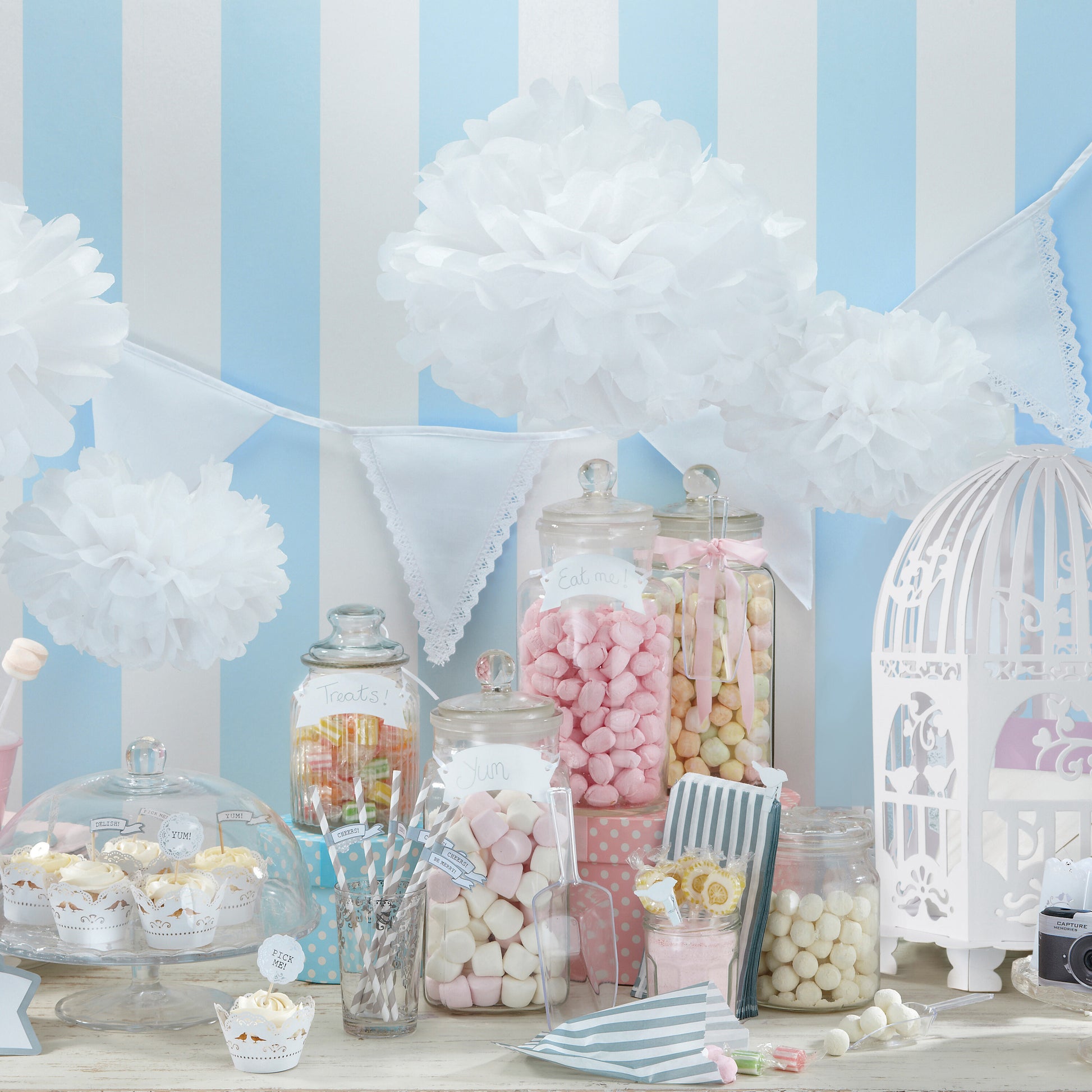 either "be merry" or "cheers". Liven up your party table