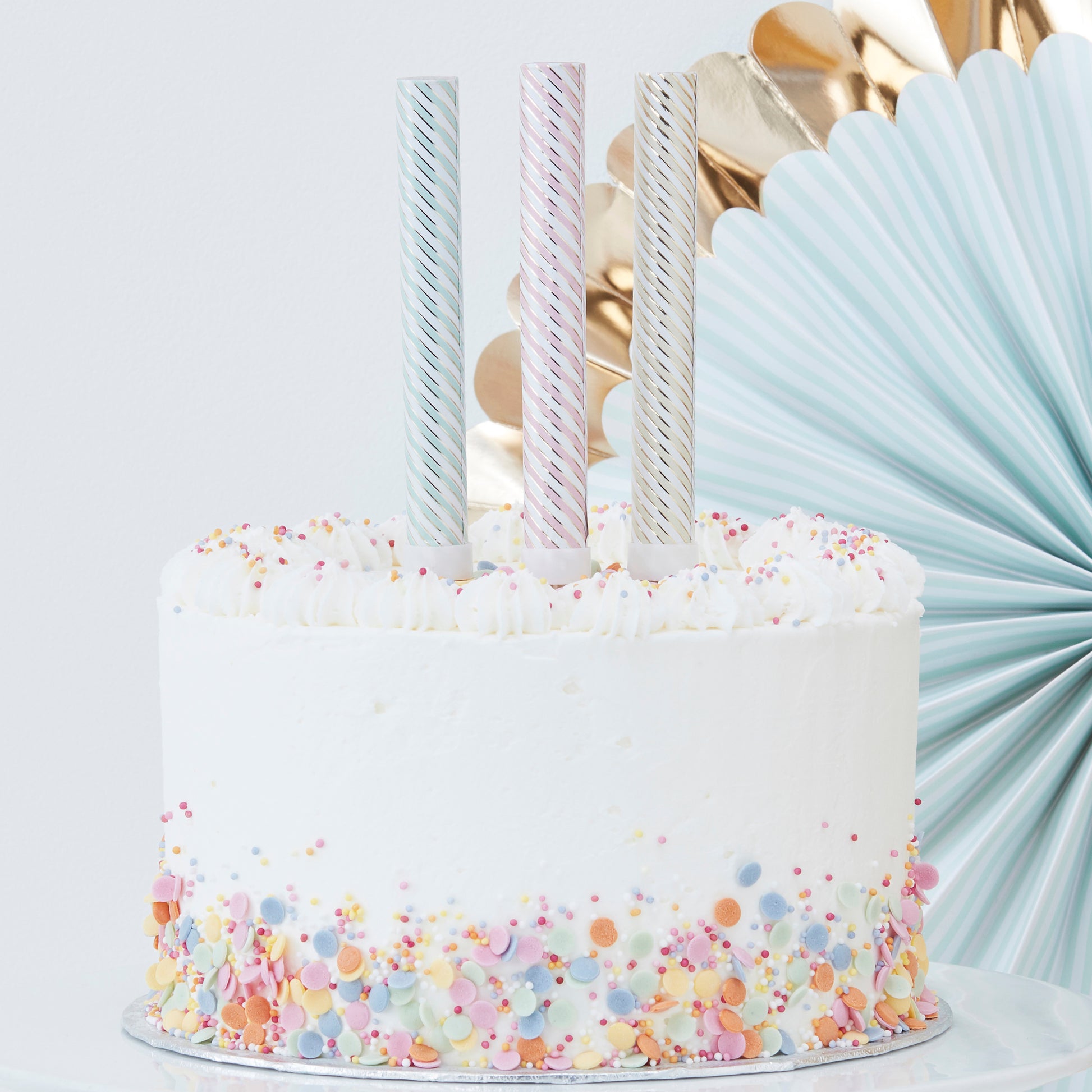Pastel and Gold Foiled Striped Cake Fountain Candles