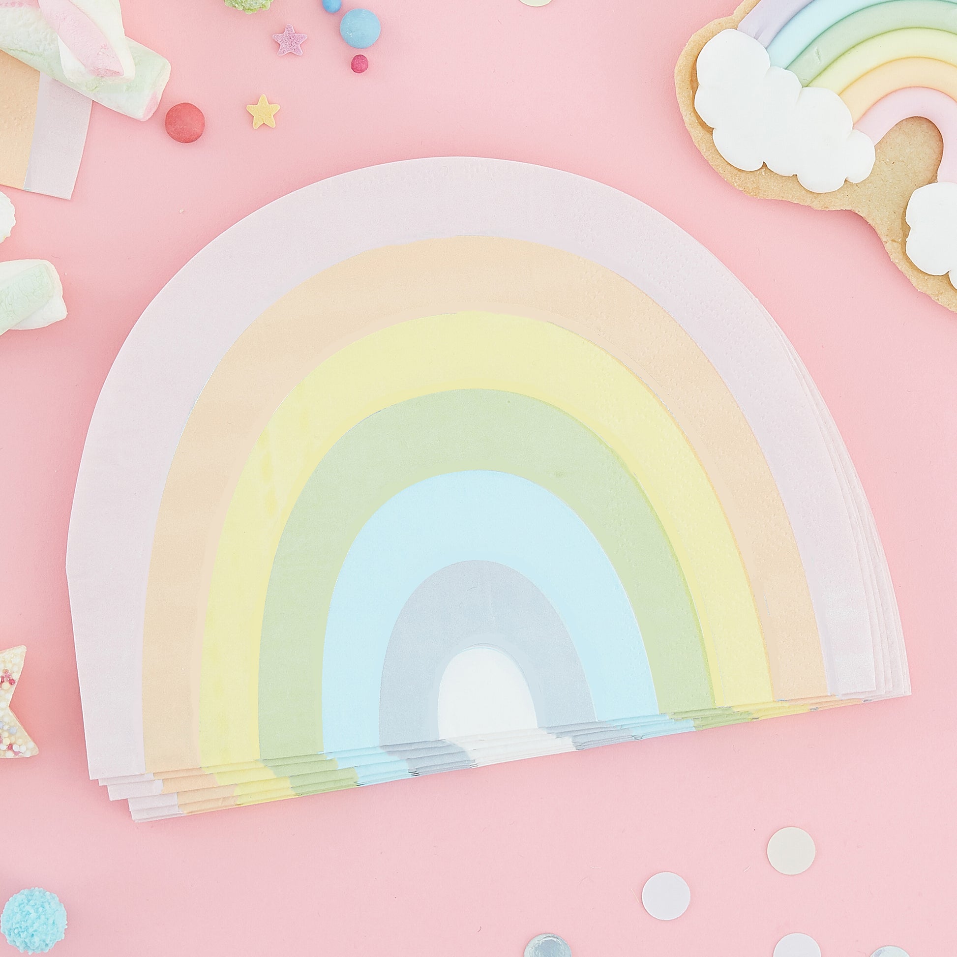 A fun finishing touch to your party venue - our pastel rainbow napkins. A super cute addition at your party!