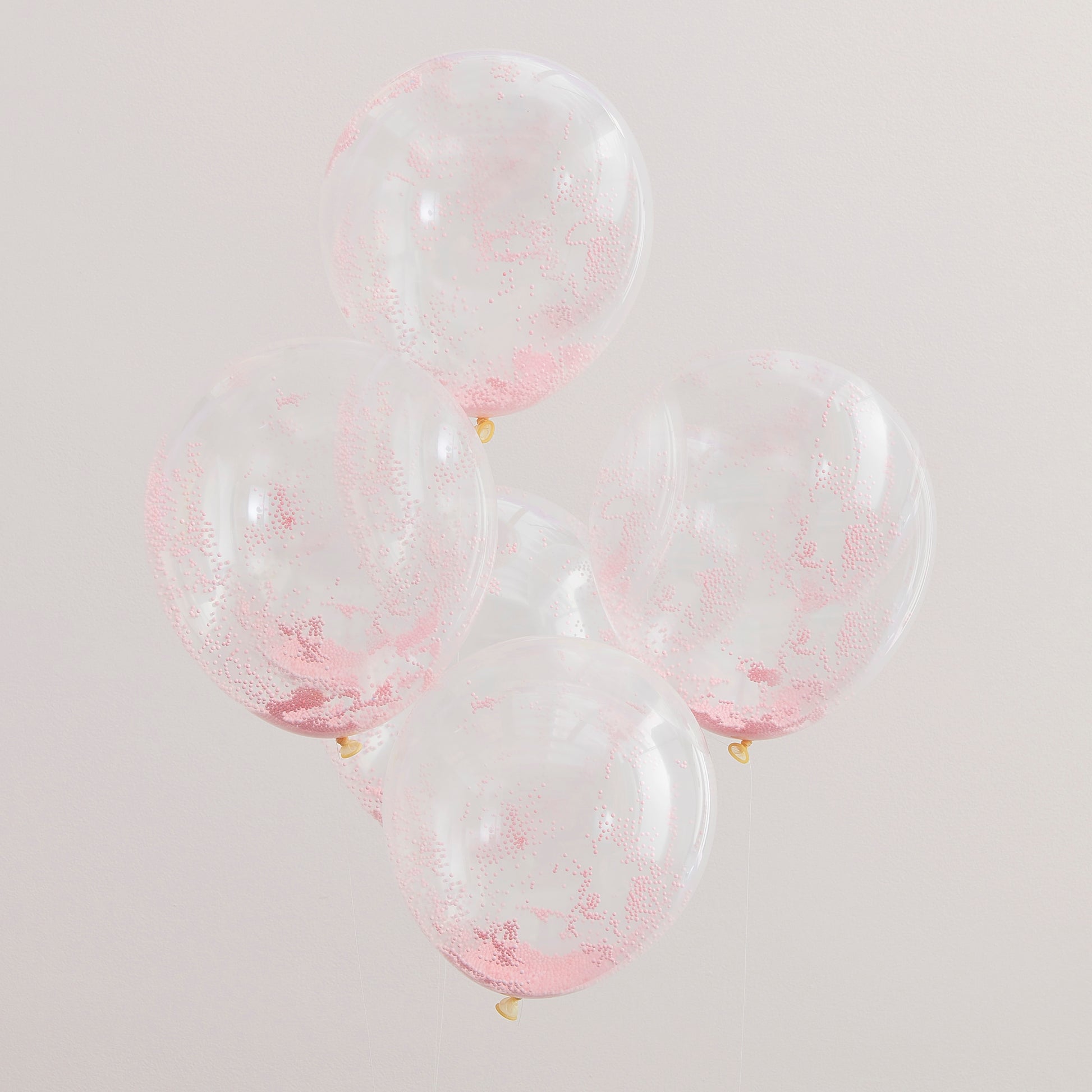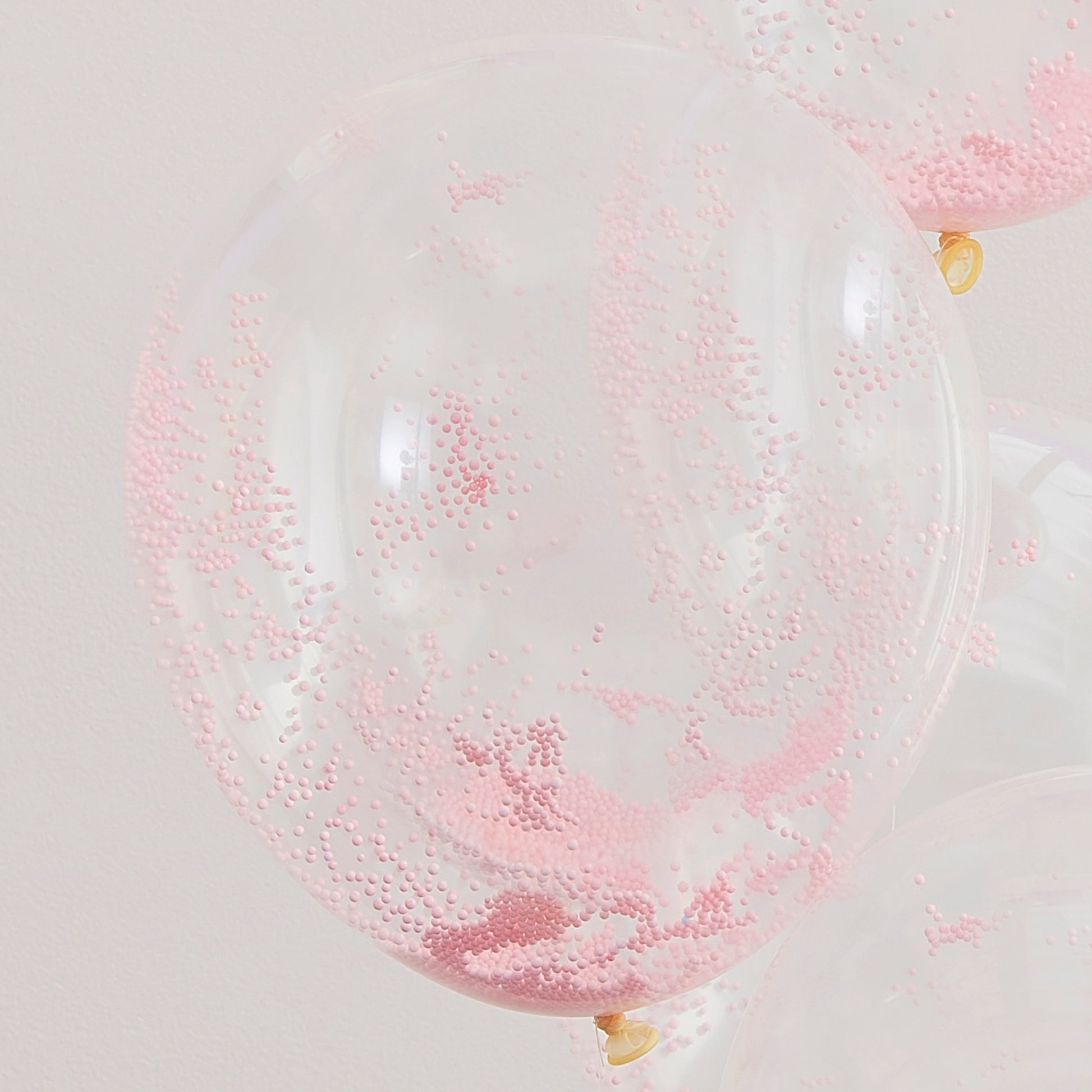 5 x 12 inch Pastel Pink Foam Bead Confetti Filled Balloons