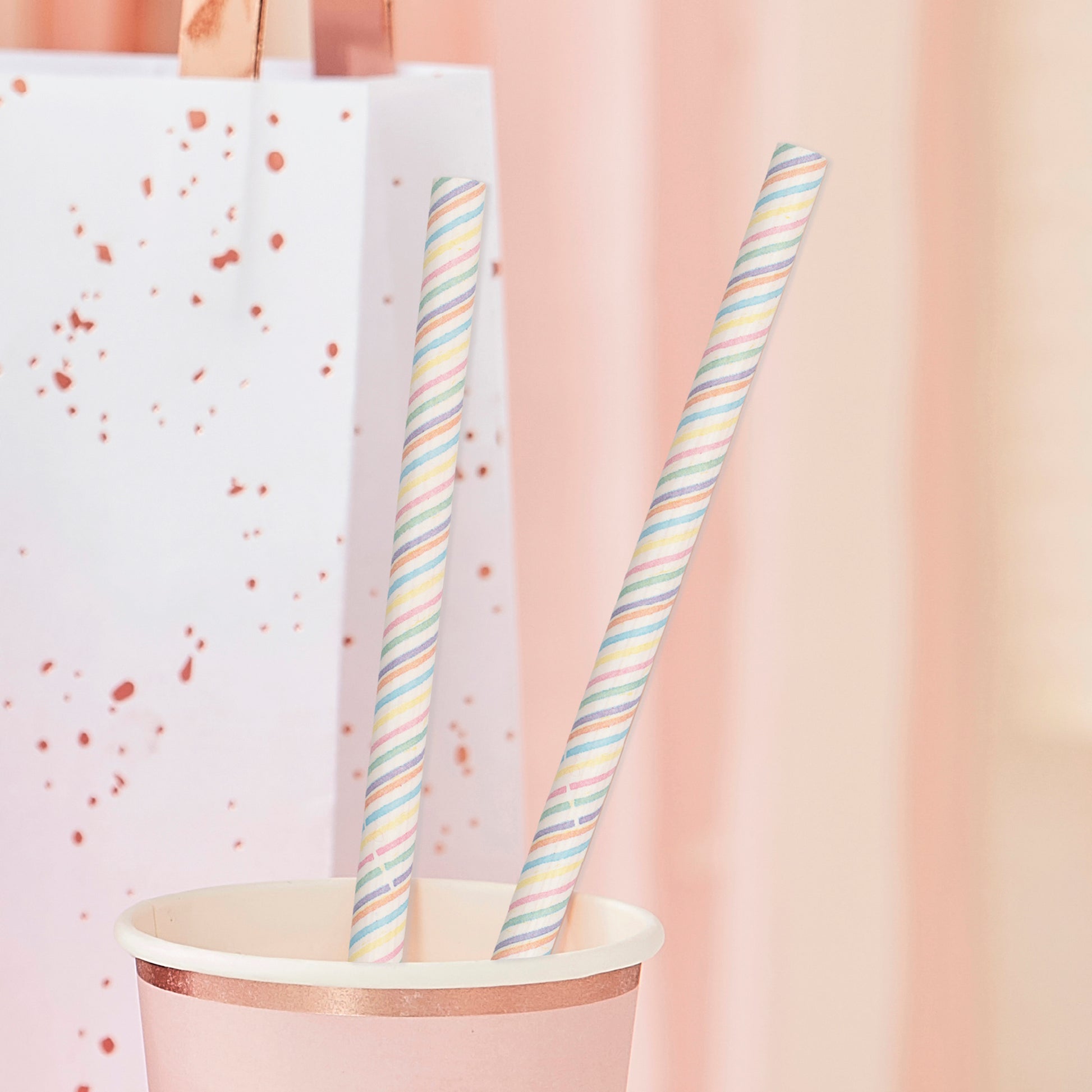 These paper straws are eco-friendly and manufactured in the UK so they're good for the planet and great for your party! These pastel stripe eco straws work with any theme so use at all your celebrations!