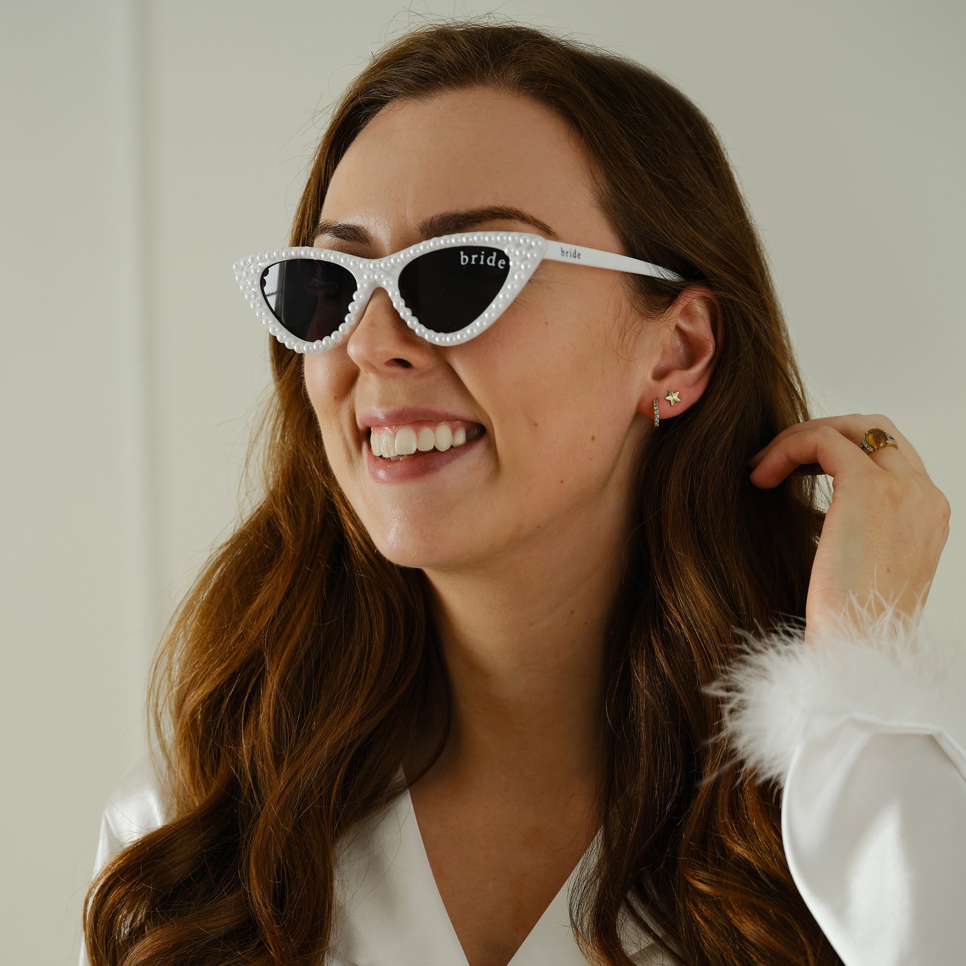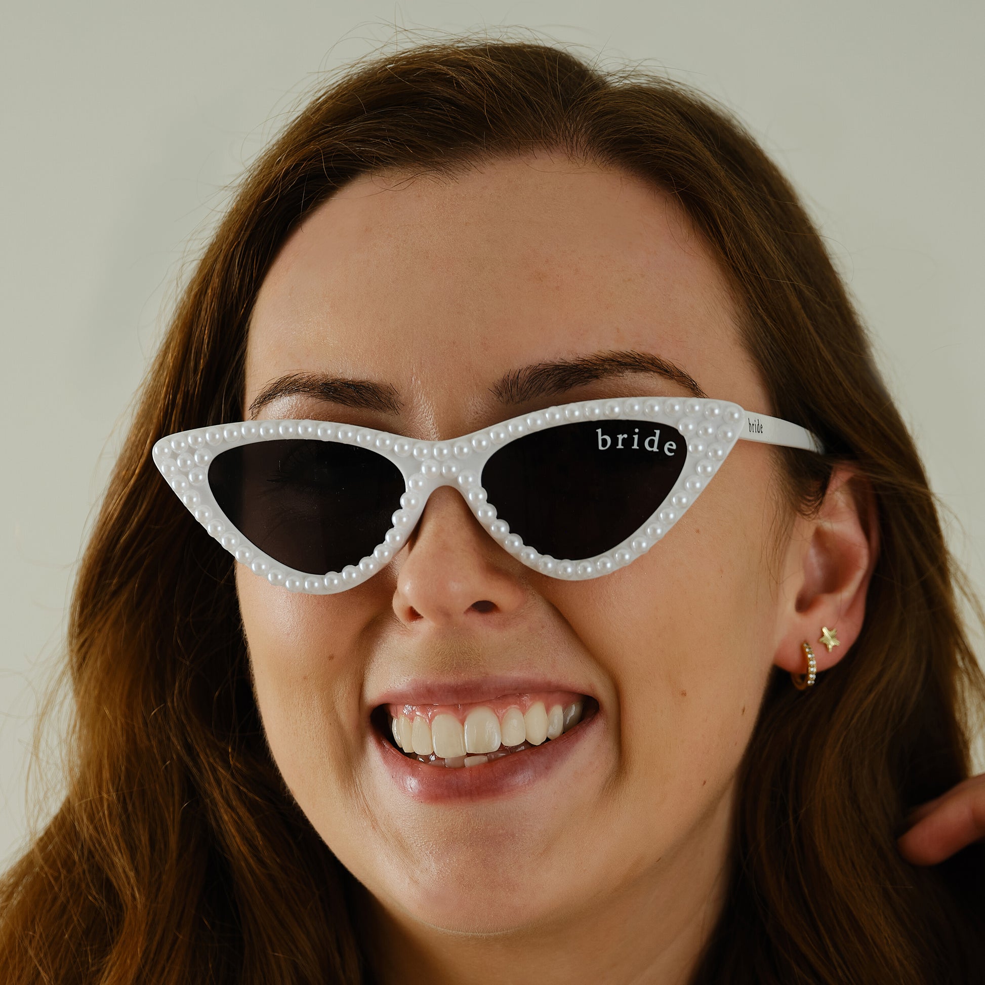 Turn heads with these pearl-embellished cat-eye glasses, featuring 'Bride' on the lens. The perfect accessory for the bride-to-be to flaunt her status in style at the hen party.