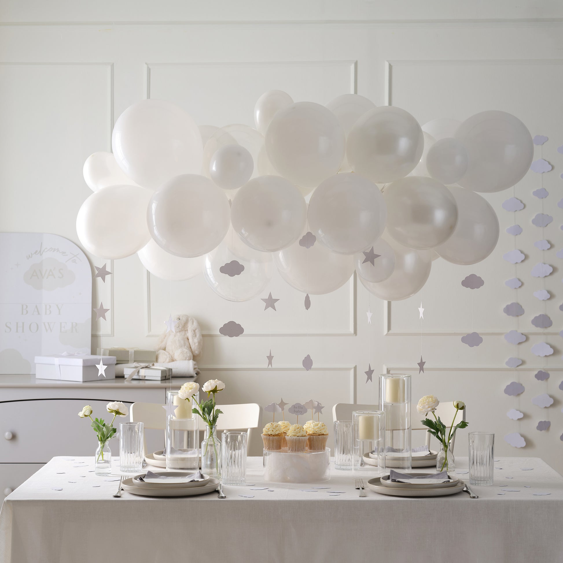 Bring a whimsical touch to your baby shower with our new Dream Baby collection, featuring soft neutral tones of white, cream and grey and pretty pearlescent accents. From cloud inspired decorations to thoughtful keepsakes, you will find all you need to celebrate the new arrival in style.