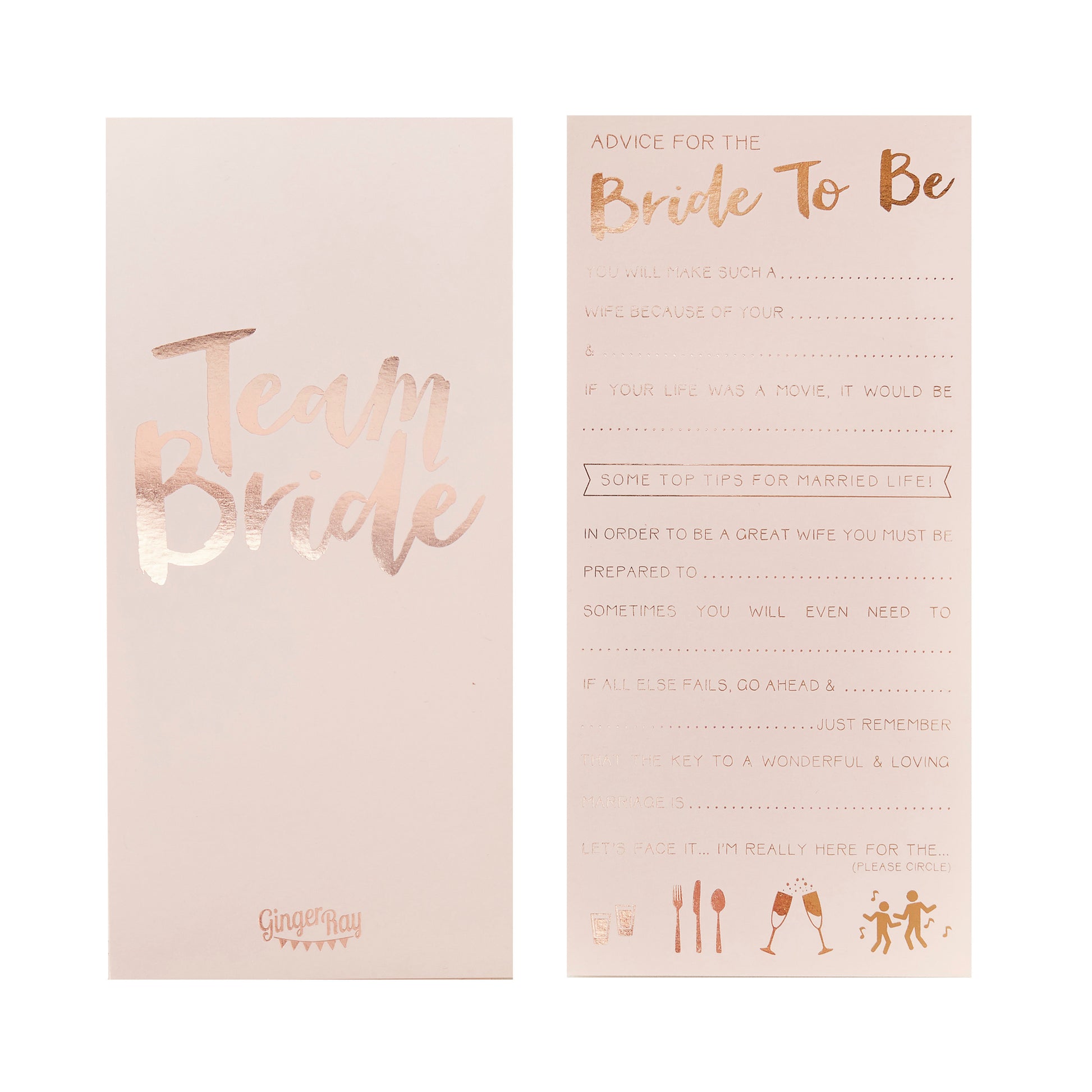 Pink and Rose Gold Advice for the Bride to Be Cards - Team Bride