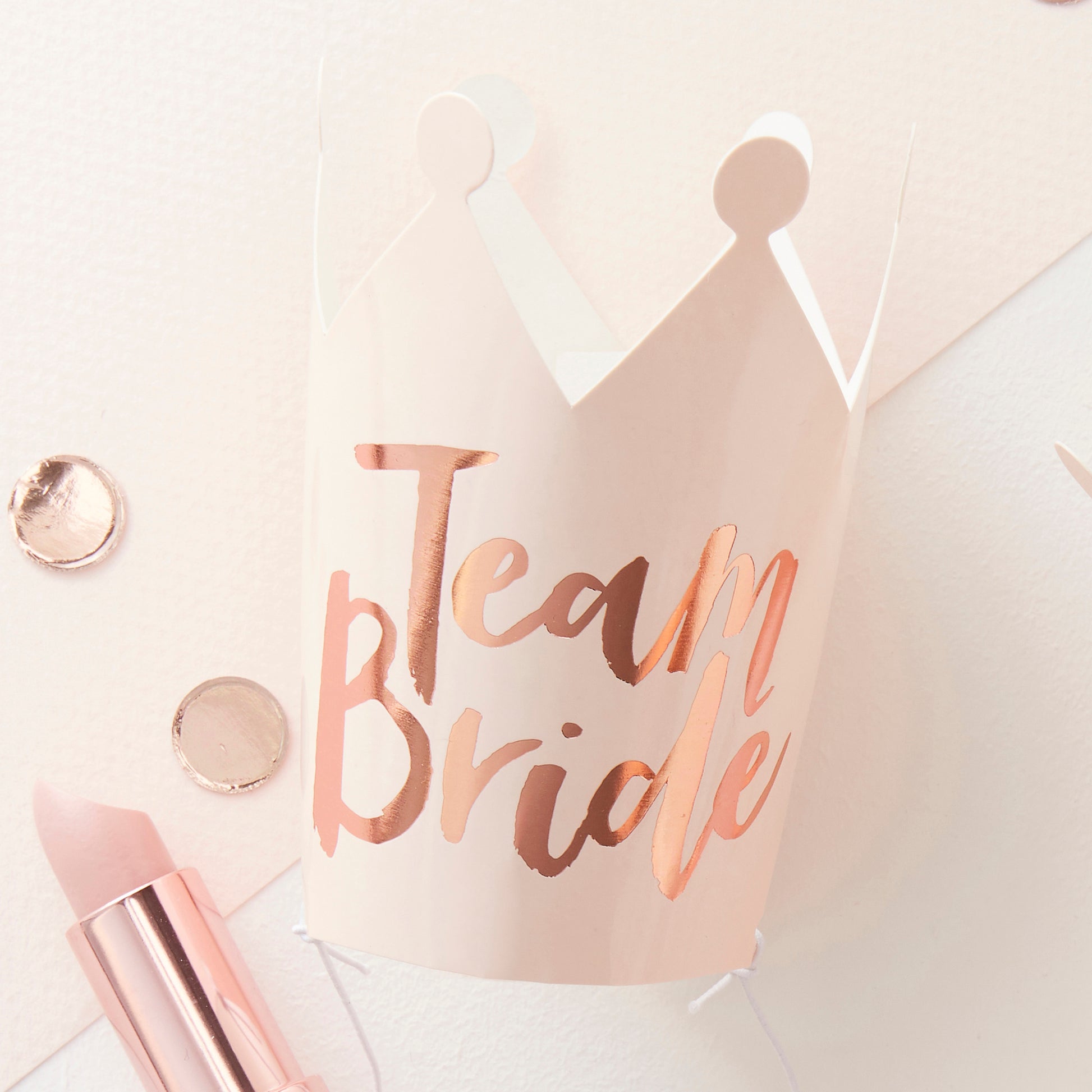Use these gorgeous pink and rose gold foiled Team Bride mini crowns for the hen party celebration!