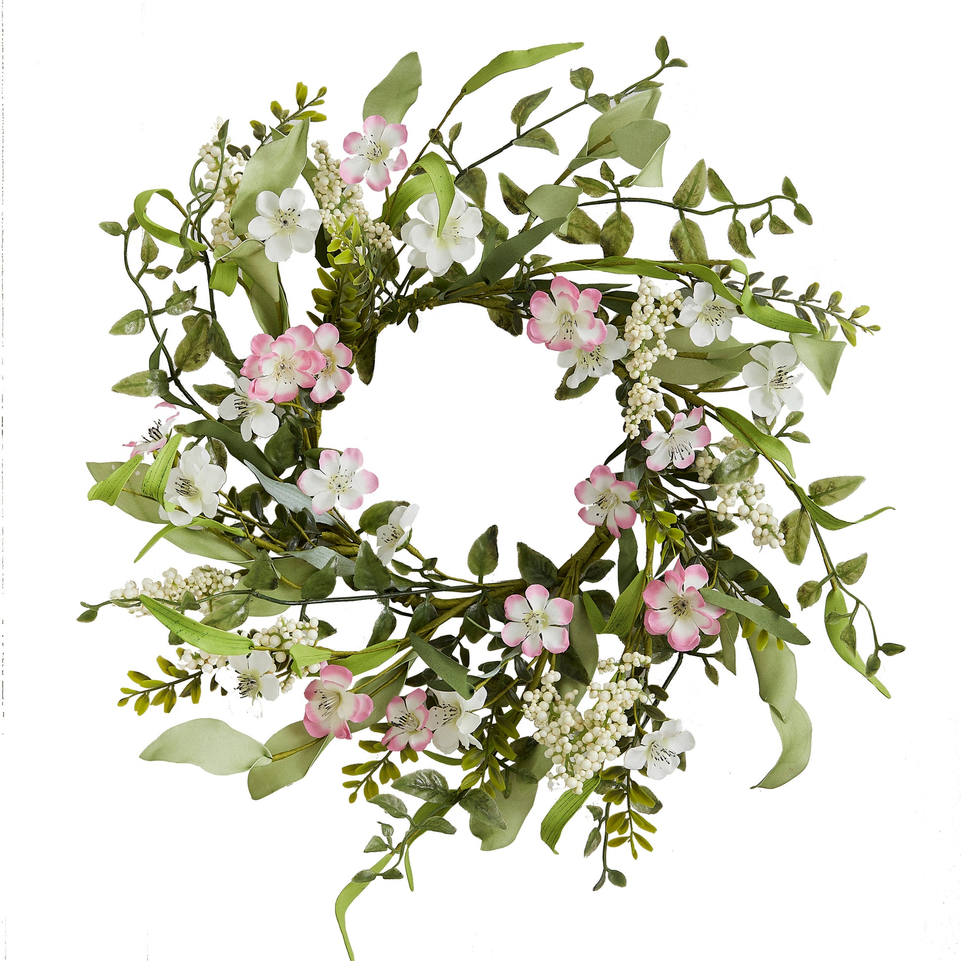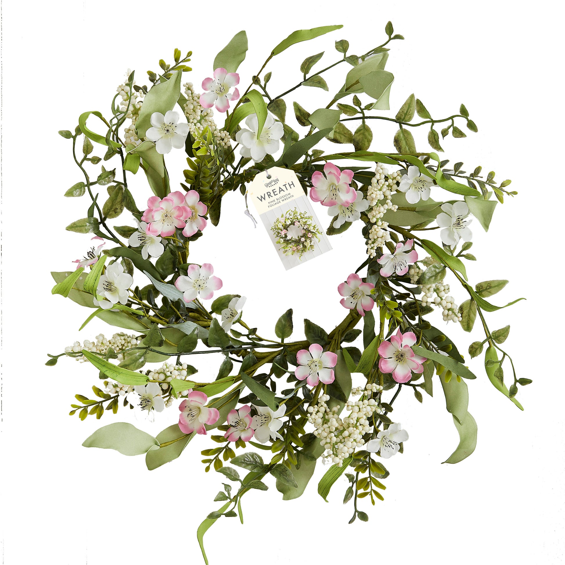Pink Artificial Flower Foliage Spring Wreath