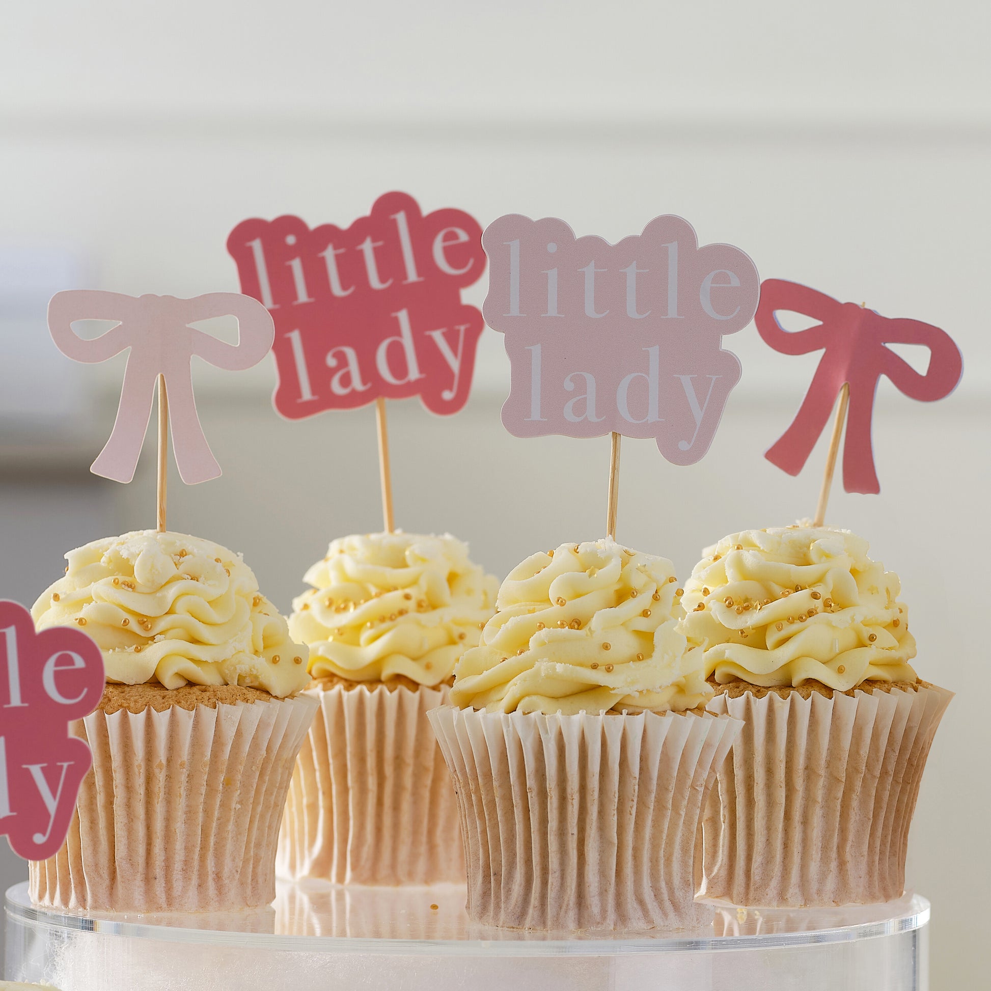 Pink Bows and 'Little Lady' Baby Shower Cupcake Toppers