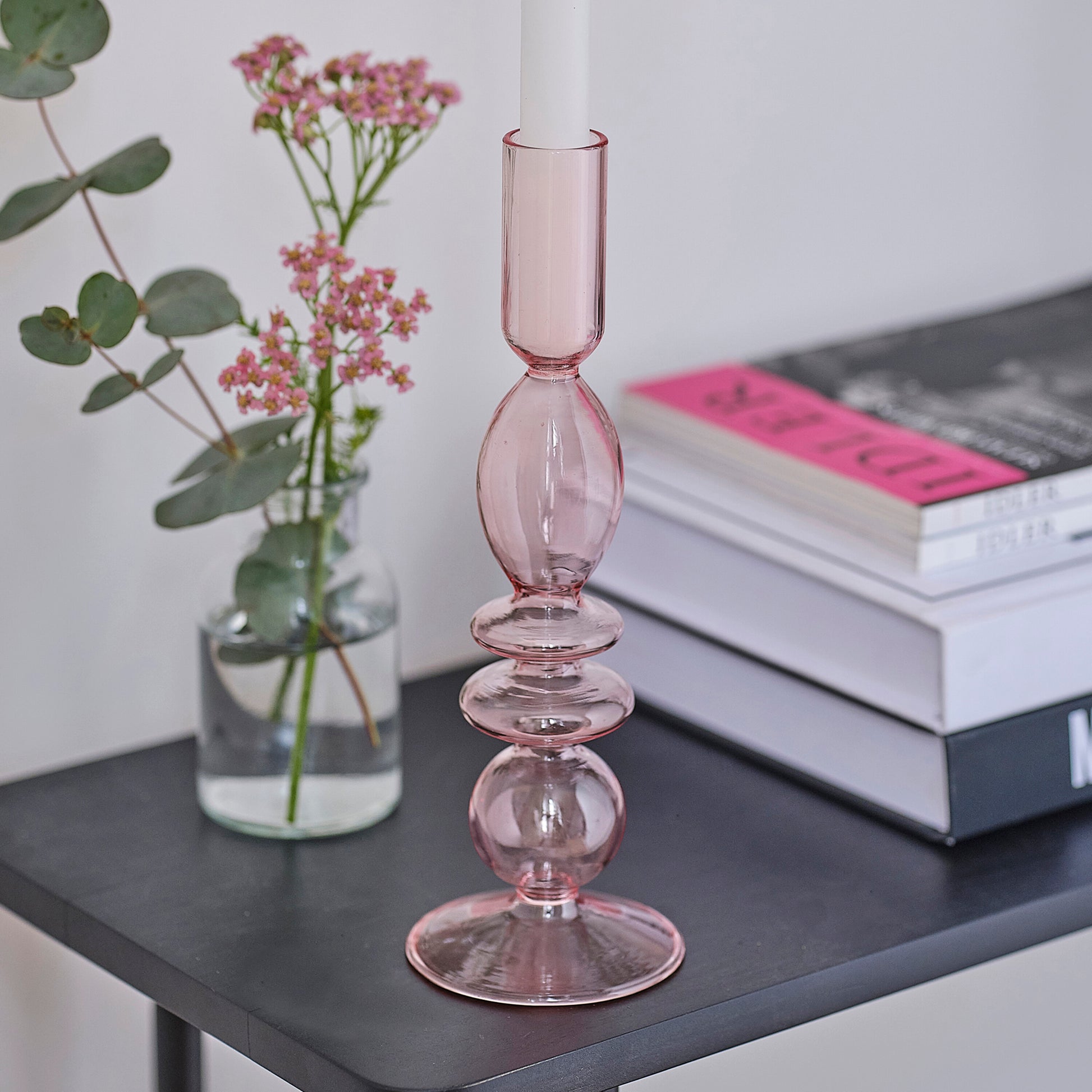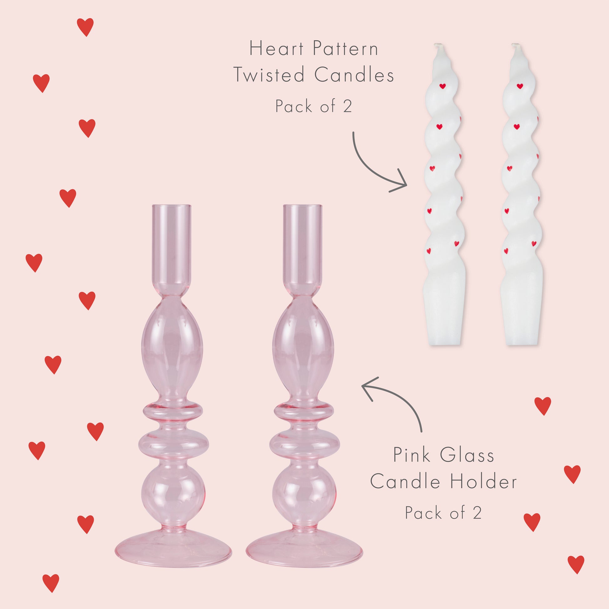 Pink Glass Candle Holders & Heart Pattern Dinner Candle Set