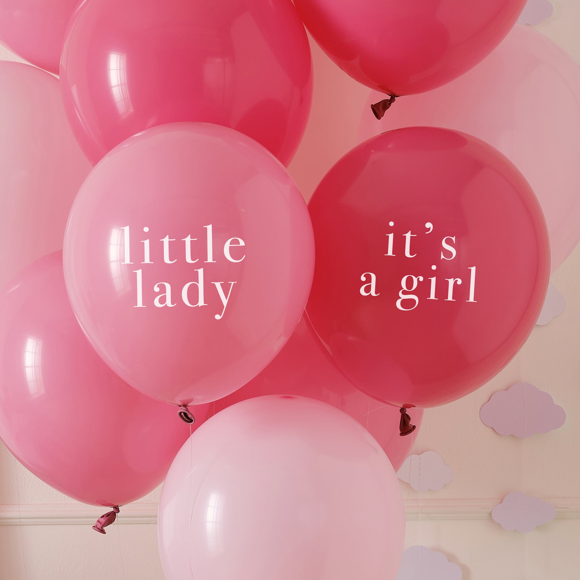 11 x 12" pink balloons with 'it's a girl', 'hello baby' and 'little lady' slogans