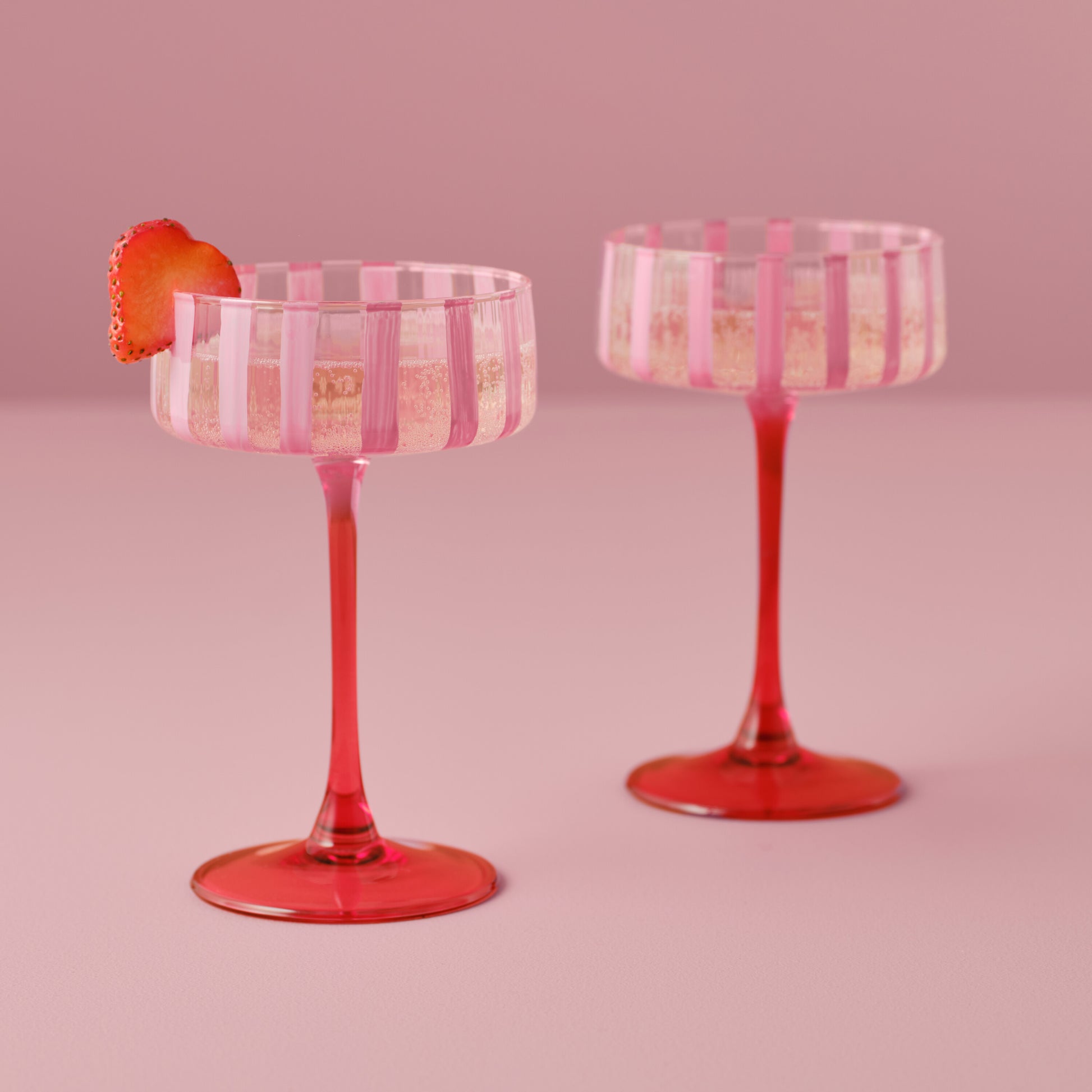 Add a fun touch to your Galentine's dinner with our pink striped glass coupes.